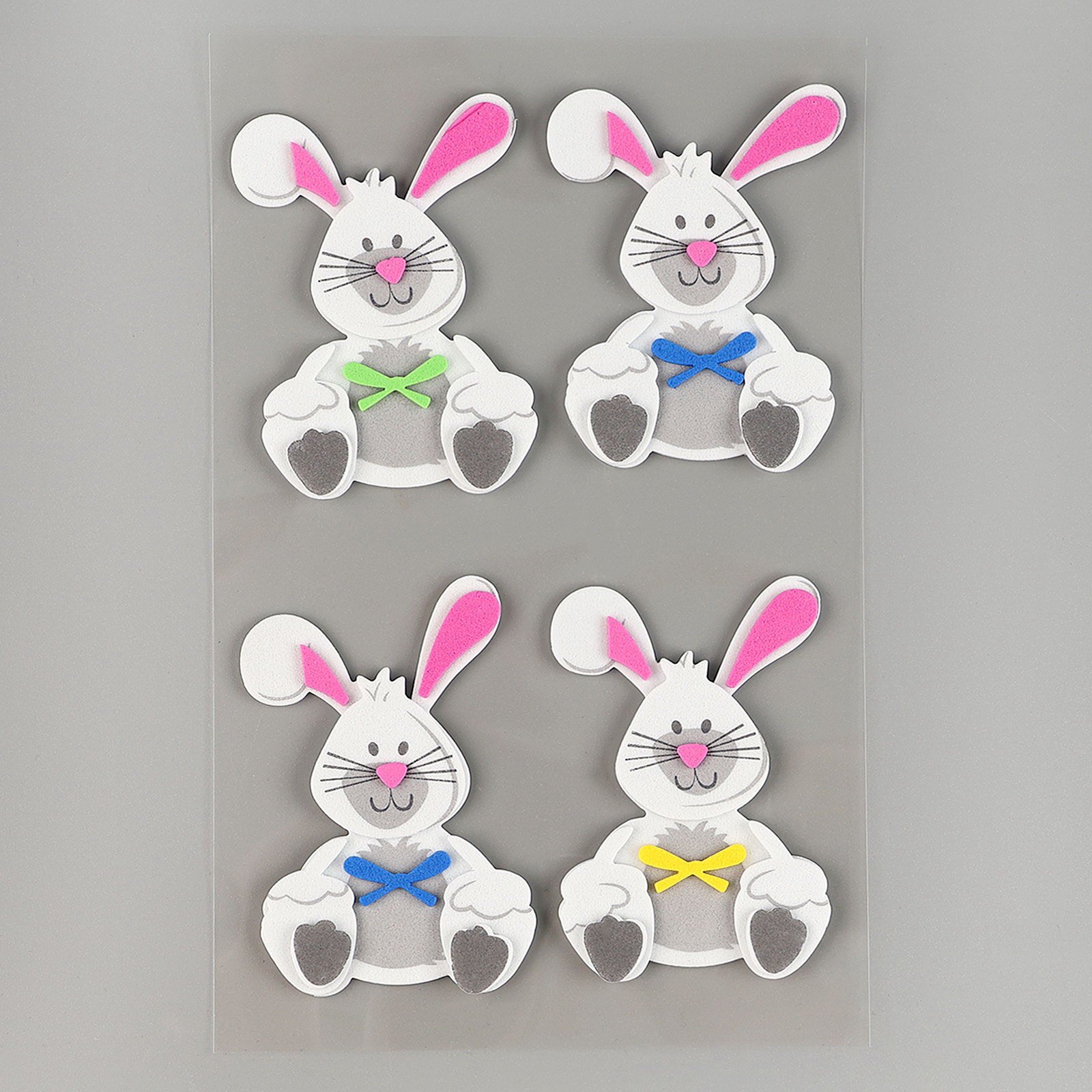 Набор наклеек на пасху из EVA "Зайки", 4 шт., 12.1x17.7x0.1 см., Китай