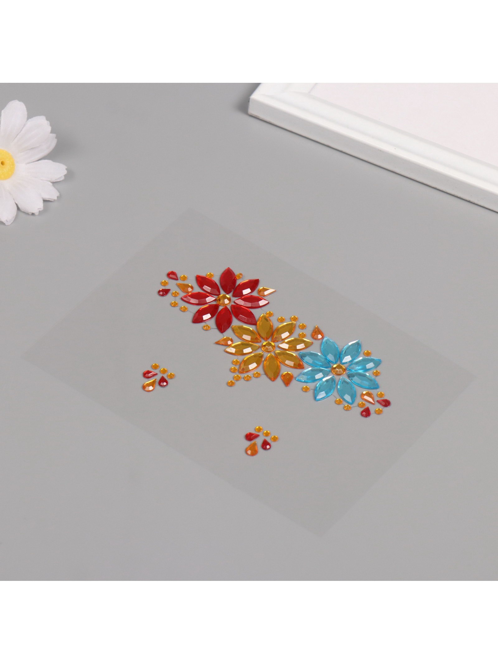 Наклейка - стразы на лицо "Три цветка", яркие цвета, макияж, 14.5x16 см, 16x14.5 см., Арт Узор, Китай
