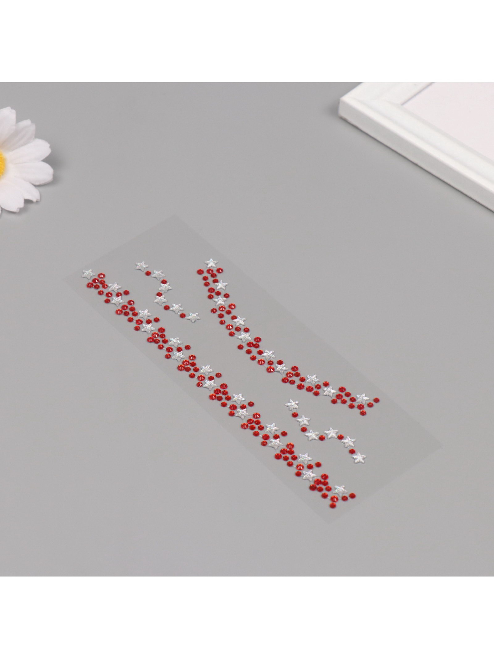 Наклейка - стразы на шею "Чокер из звёзд", красный, 11.6x18 см, 18x11.6 см., Арт Узор, Китай
