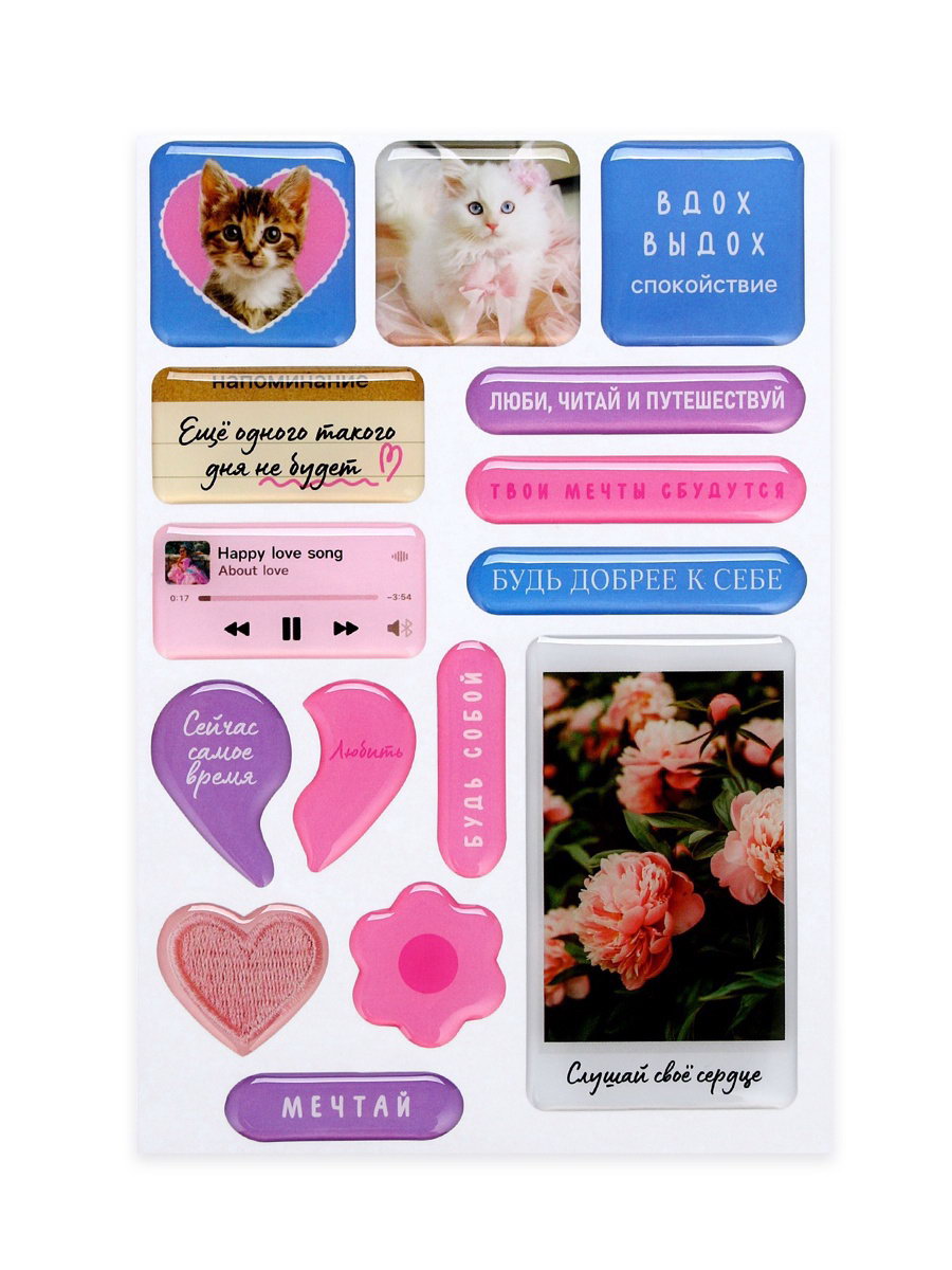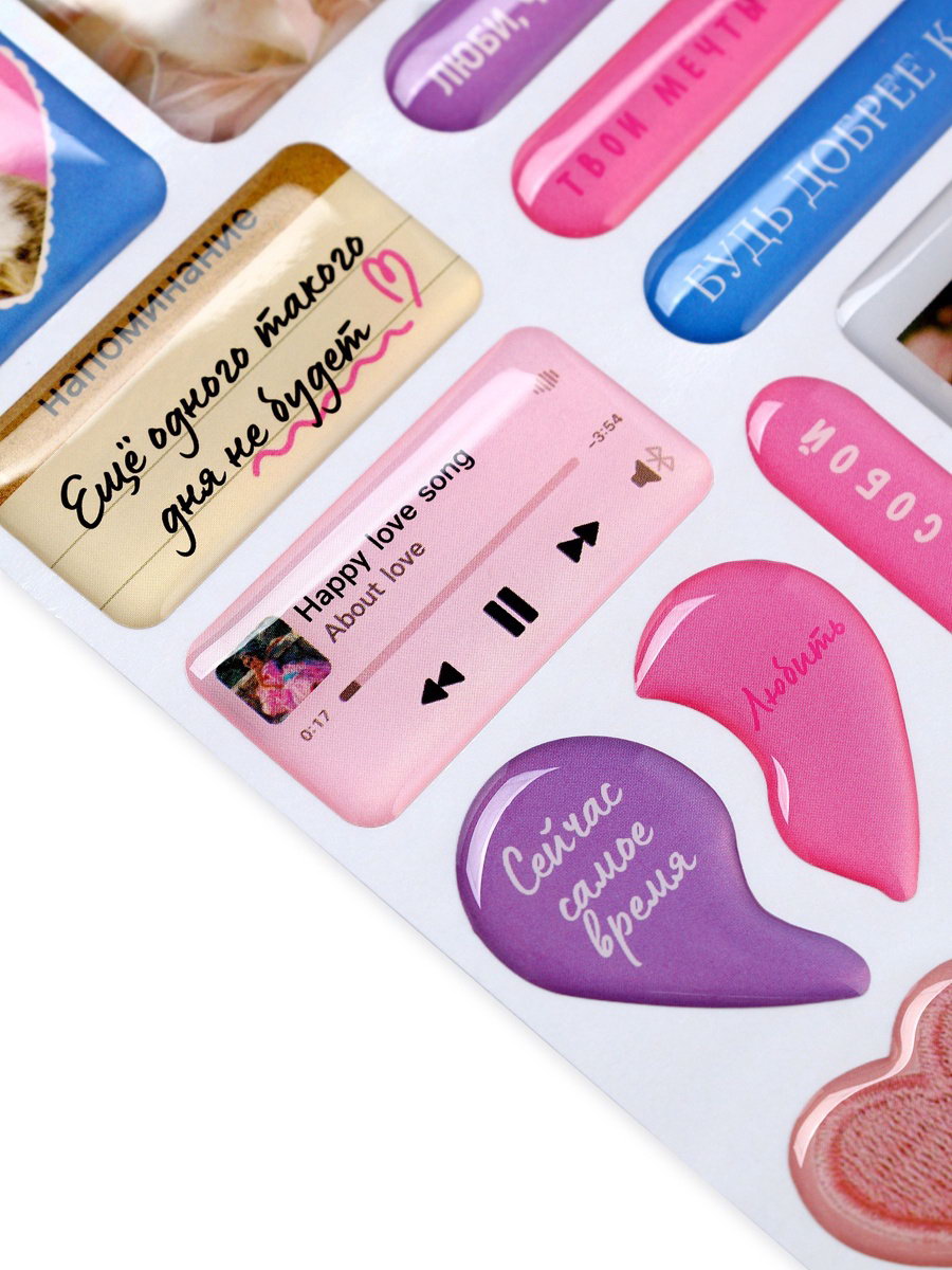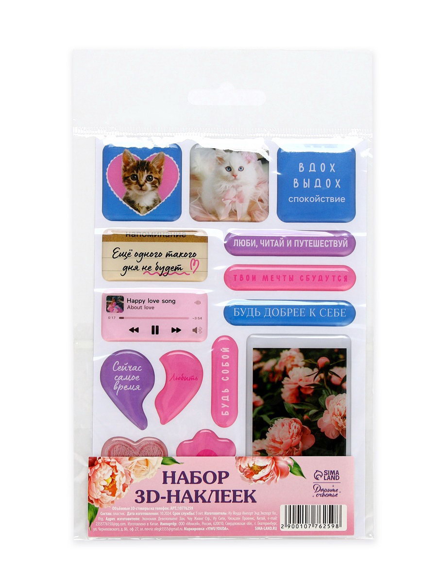 Объёмные 3D стикеры на телефон "Люби", 15 шт, 11x16x0.1 см., Дарите Счастье, Китай