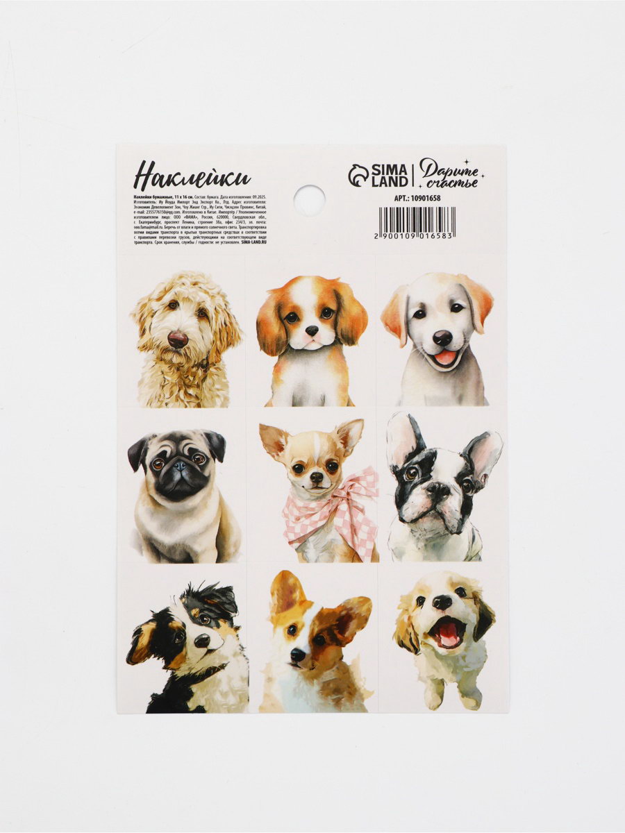 Наклейки бумажные "Пёсики", 11 x 16 см, 15.5x11x0.1 см., Дарите Счастье, Китай