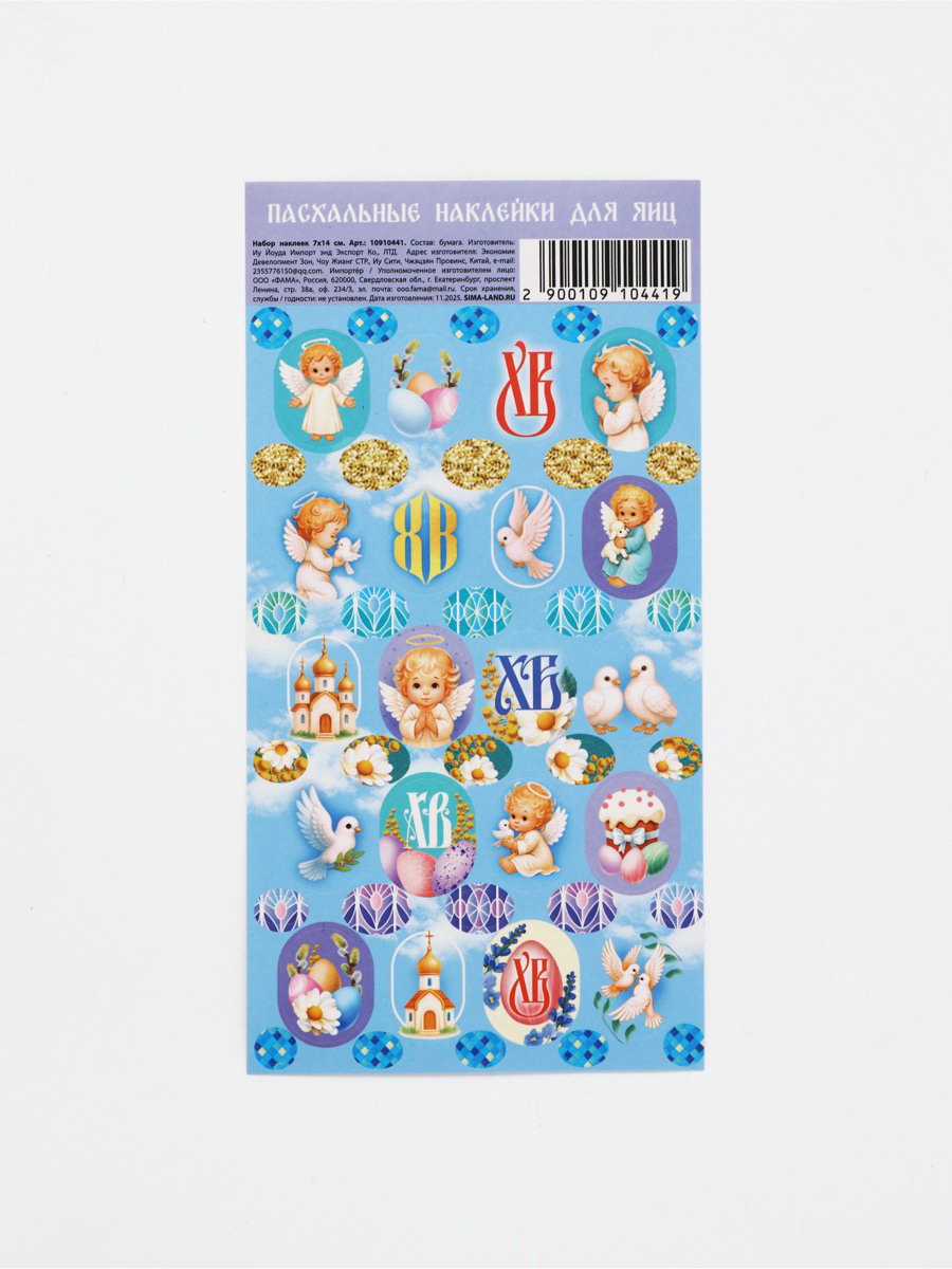 Пасхальные наклейки на яйца "Ангелы" 7 x 14 см, 0.1x7.3x14.3 см., Дарите Счастье, Китай