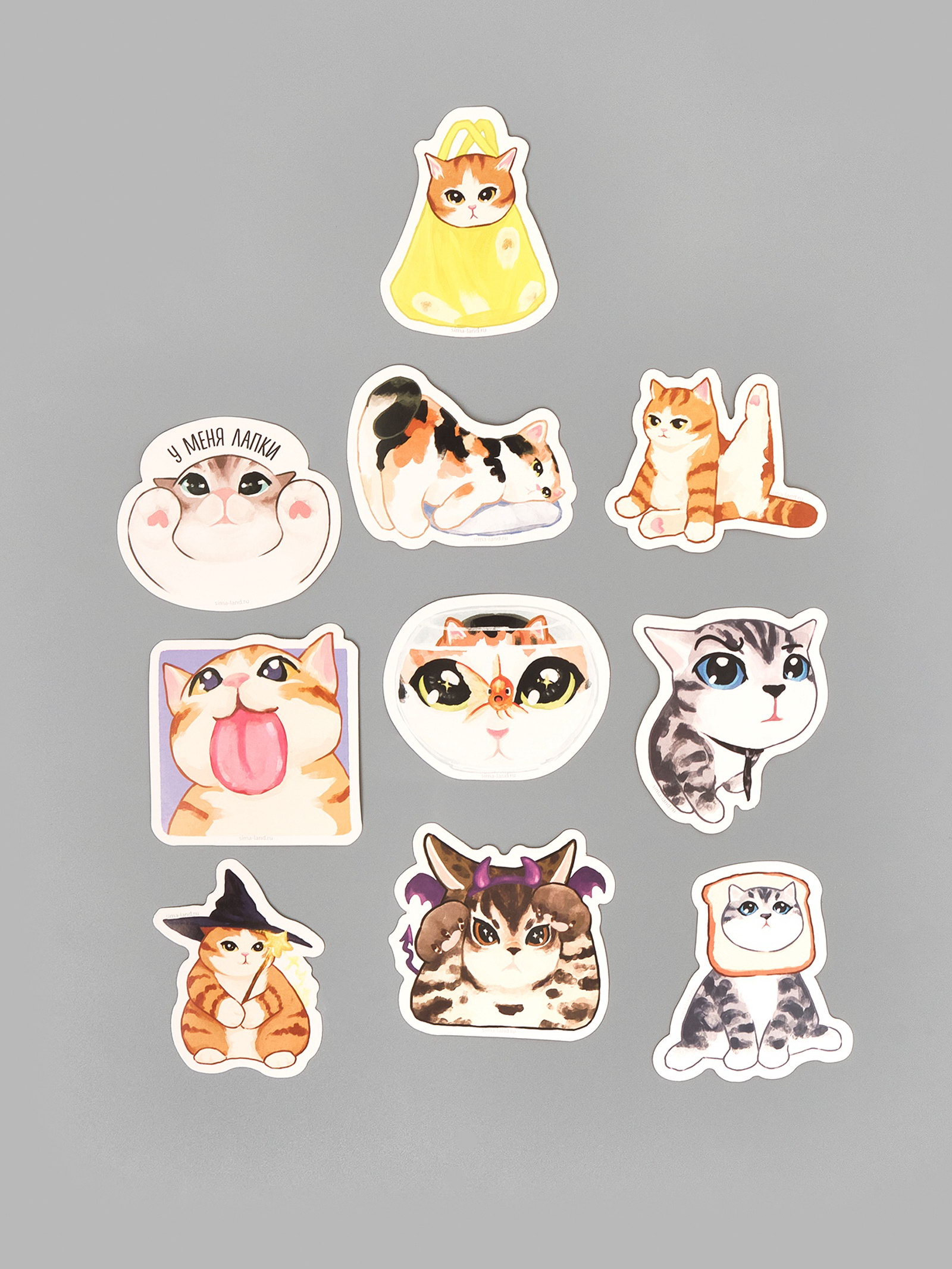 Стикеры "Котики", набор 10 шт., 7x7 см, 7x7x0.1 см., Дарите Счастье, Китай