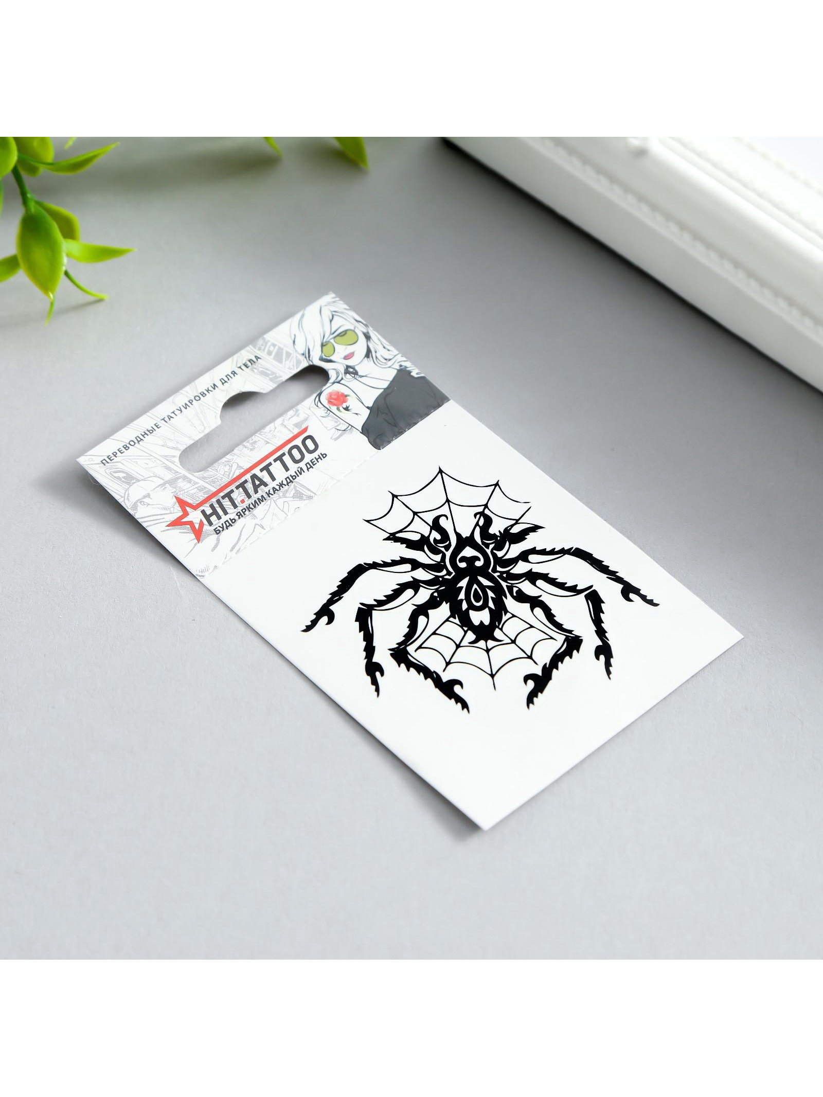 Переводная тату на тело "Паук в паутине", 5.3x6.3 см, 5.3x6.3 см., Toomix, Россия