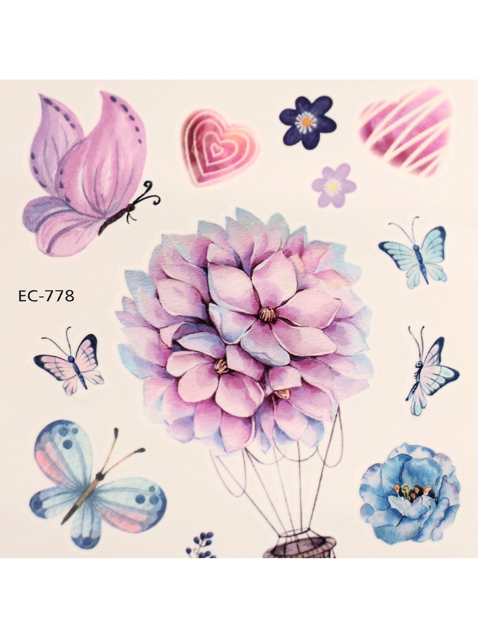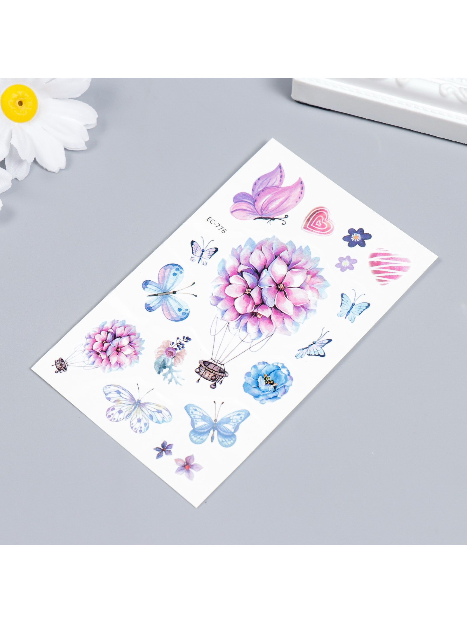 Переводные тату на тело цветные "Цветы и бабочки", 12x7.5 см, 7.5x12 см., Китай