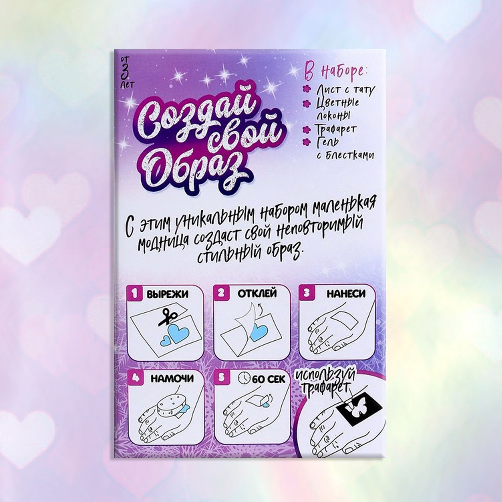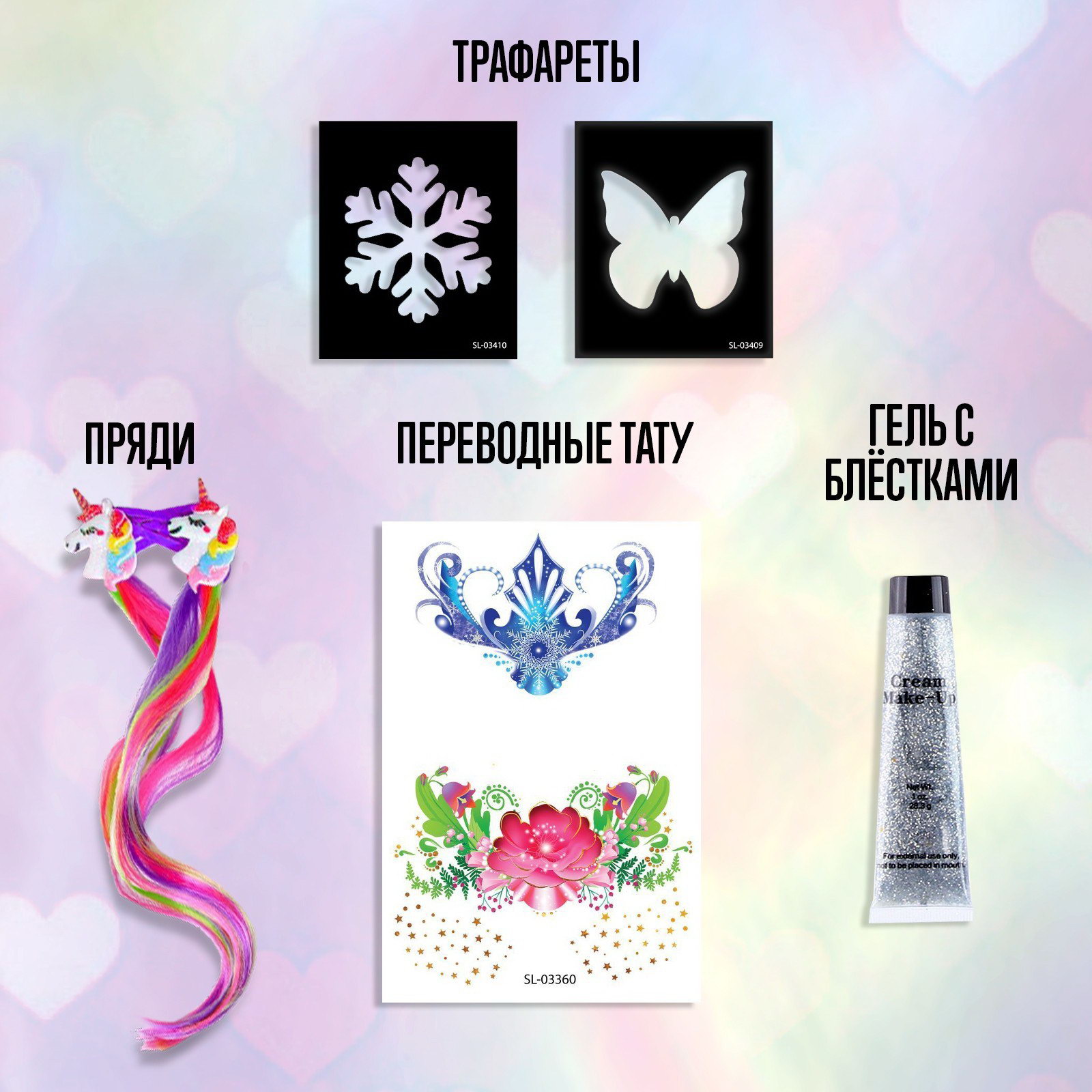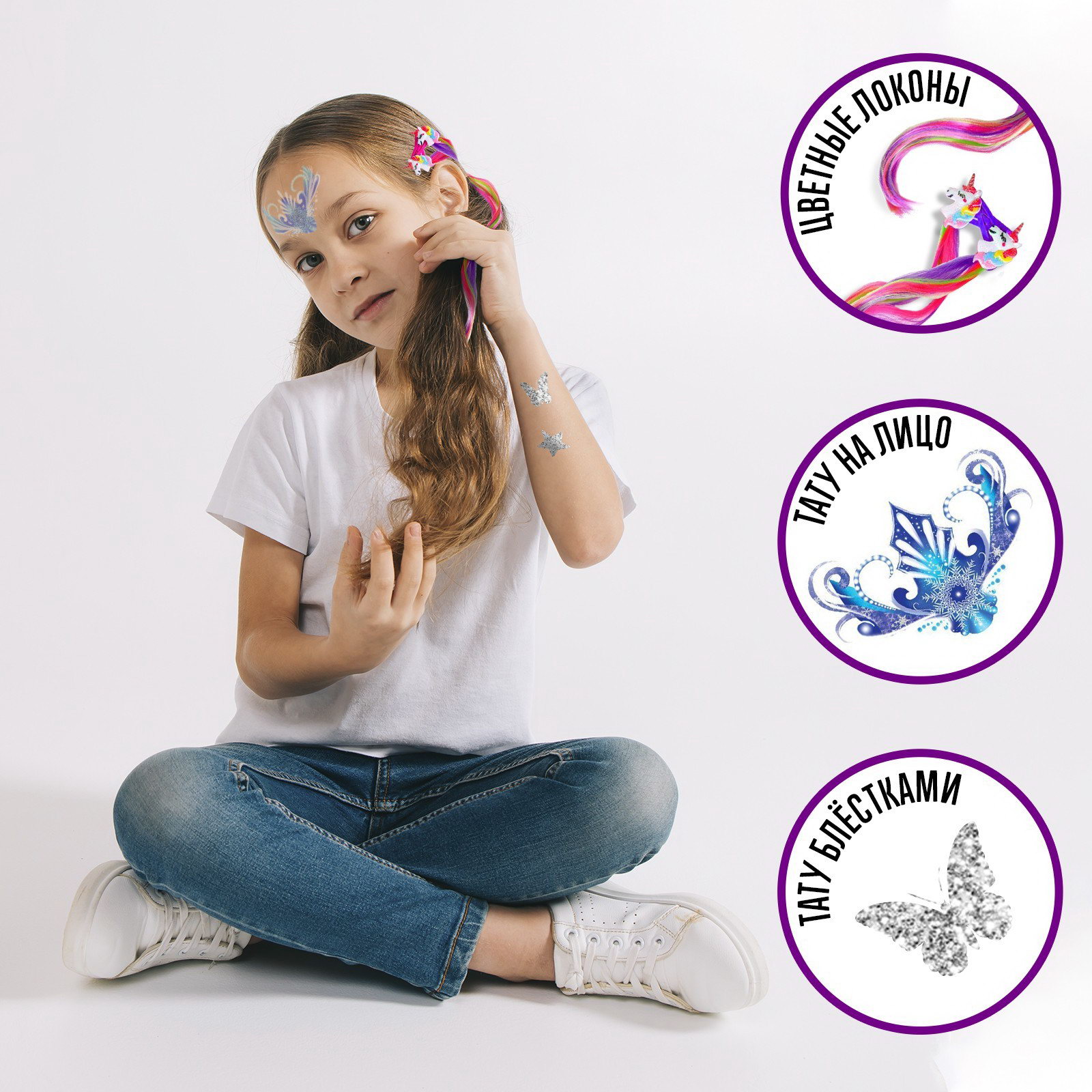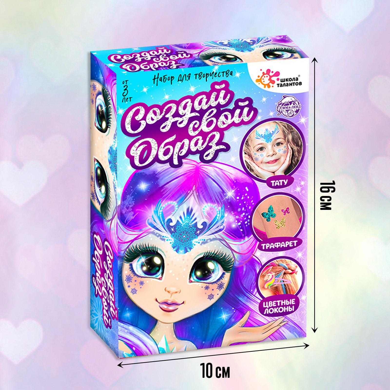 Вид: Детские, Заколка, Переводные татуировки, С блёстками Размер упаковки: 10.5 x 4 x 16 см. tnved: 9503007000 Место приклеивания: Универсальное Цвет: Разноцветный Тип: Временная татуировка Тематика: Узоры Тематика праздника: 8 Марта С набором "Создай свой образ: Принцесса зима и лето" каждая девочка примерит на себя образ любимого персонажа. В наборе: