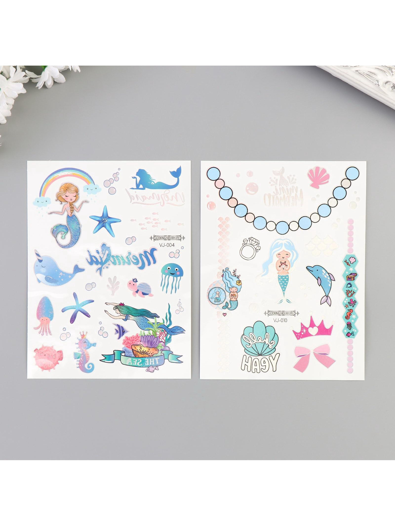 Переводные тату на тело цветные "Русалки", 12x16 см, МИКС, 19x12 см., Китай