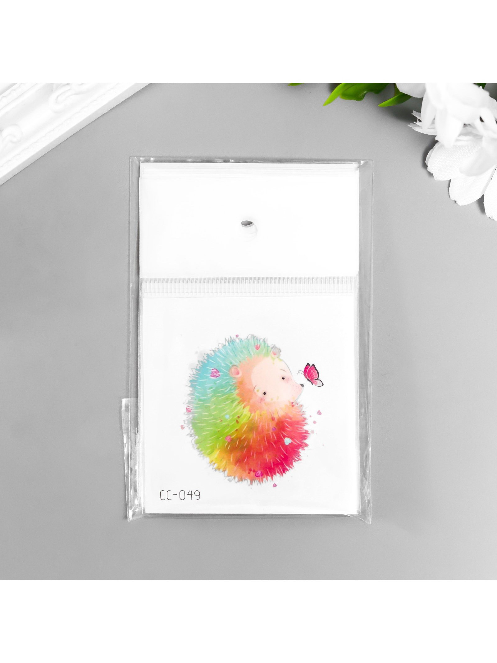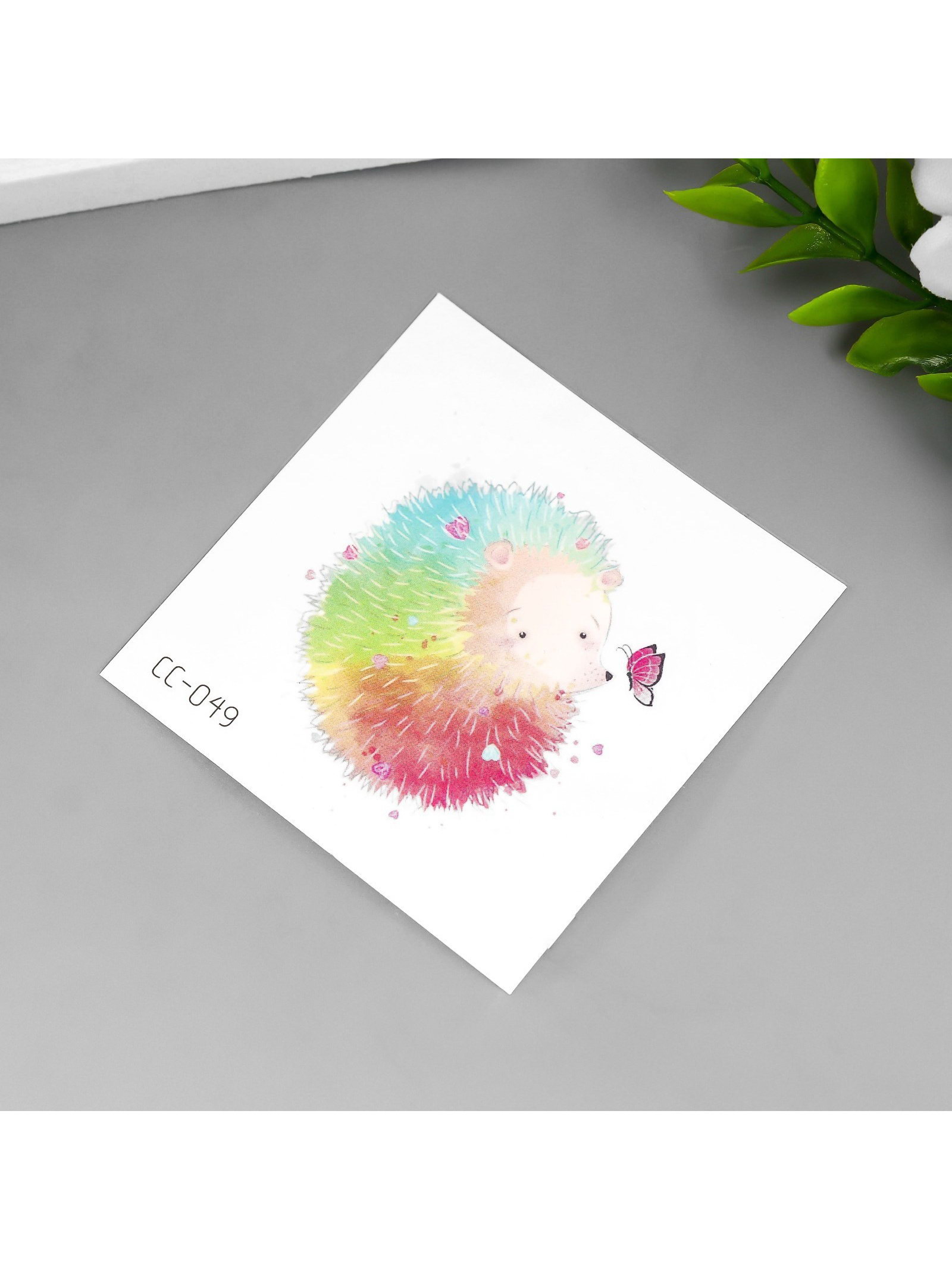 Переводная тату на тело цветная "Радужный ёжик с бабочкой", 6x6 см, 6x6 см., Китай