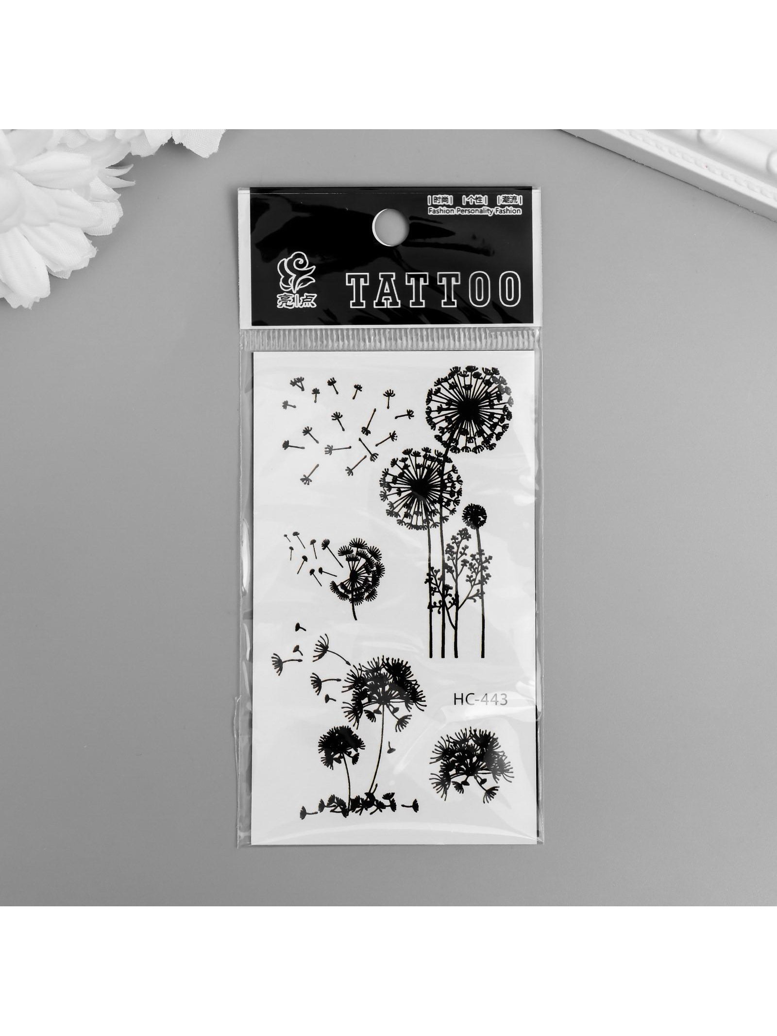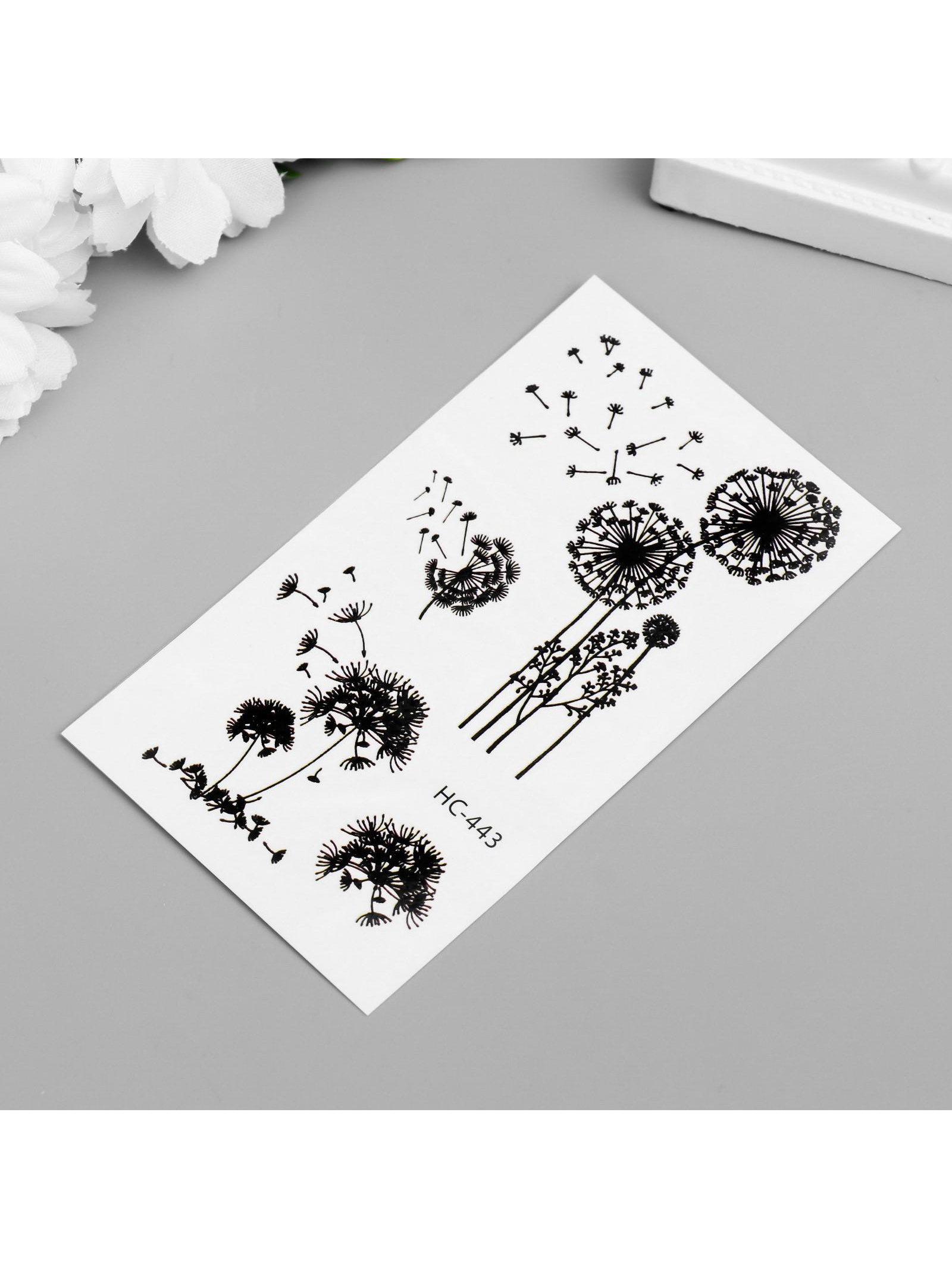 Татуировка на тело чёрная "Одуванчики" 10.5х6 см, 6x10.5 см., Китай