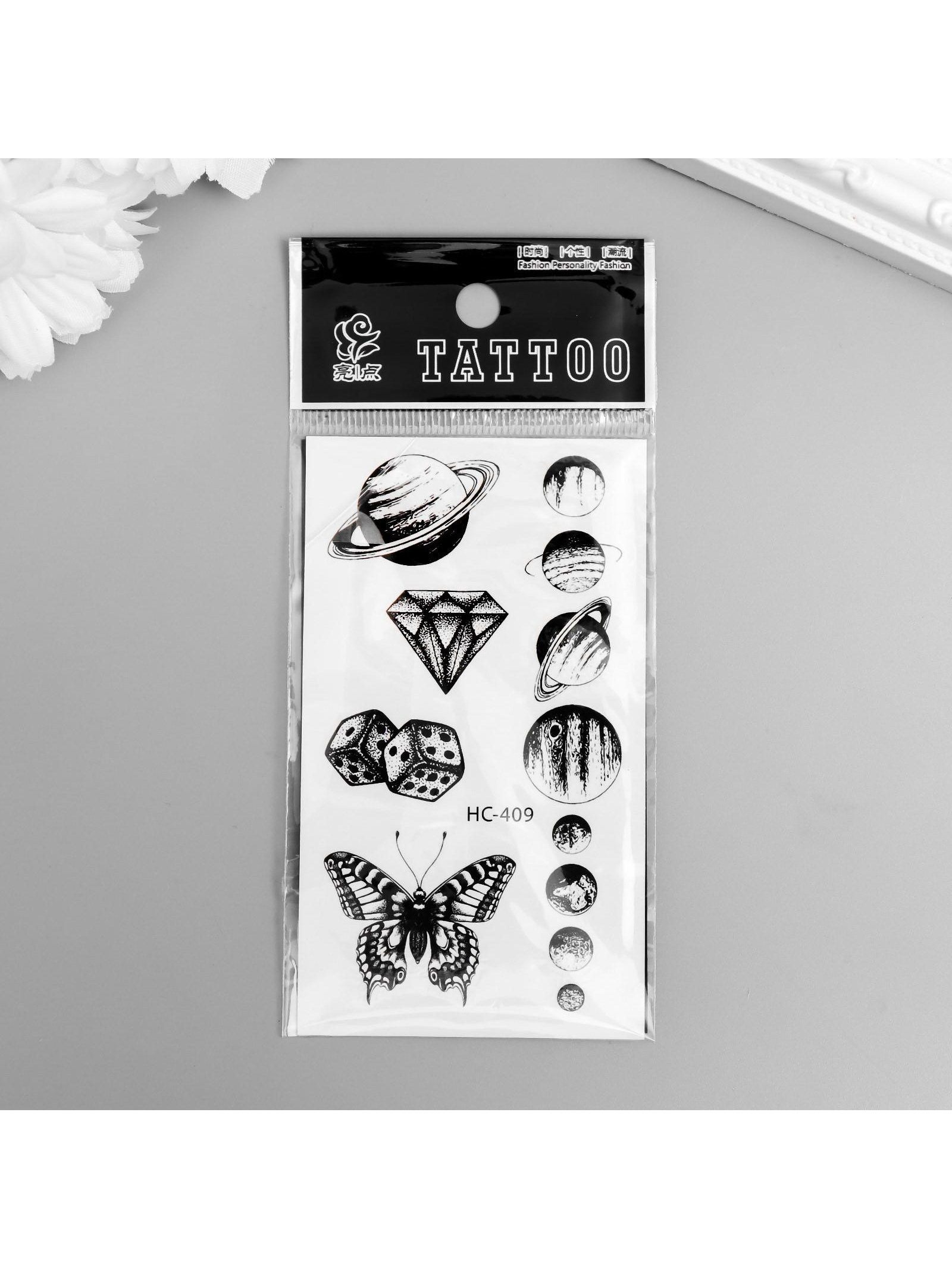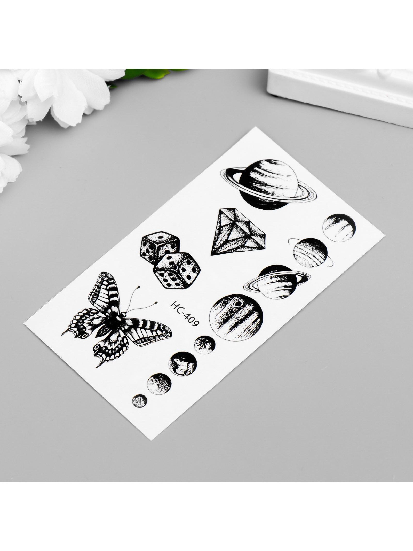 Татуировка на тело чёрная "Планетарий" 10.5х6 см, 6x10.5 см., Китай