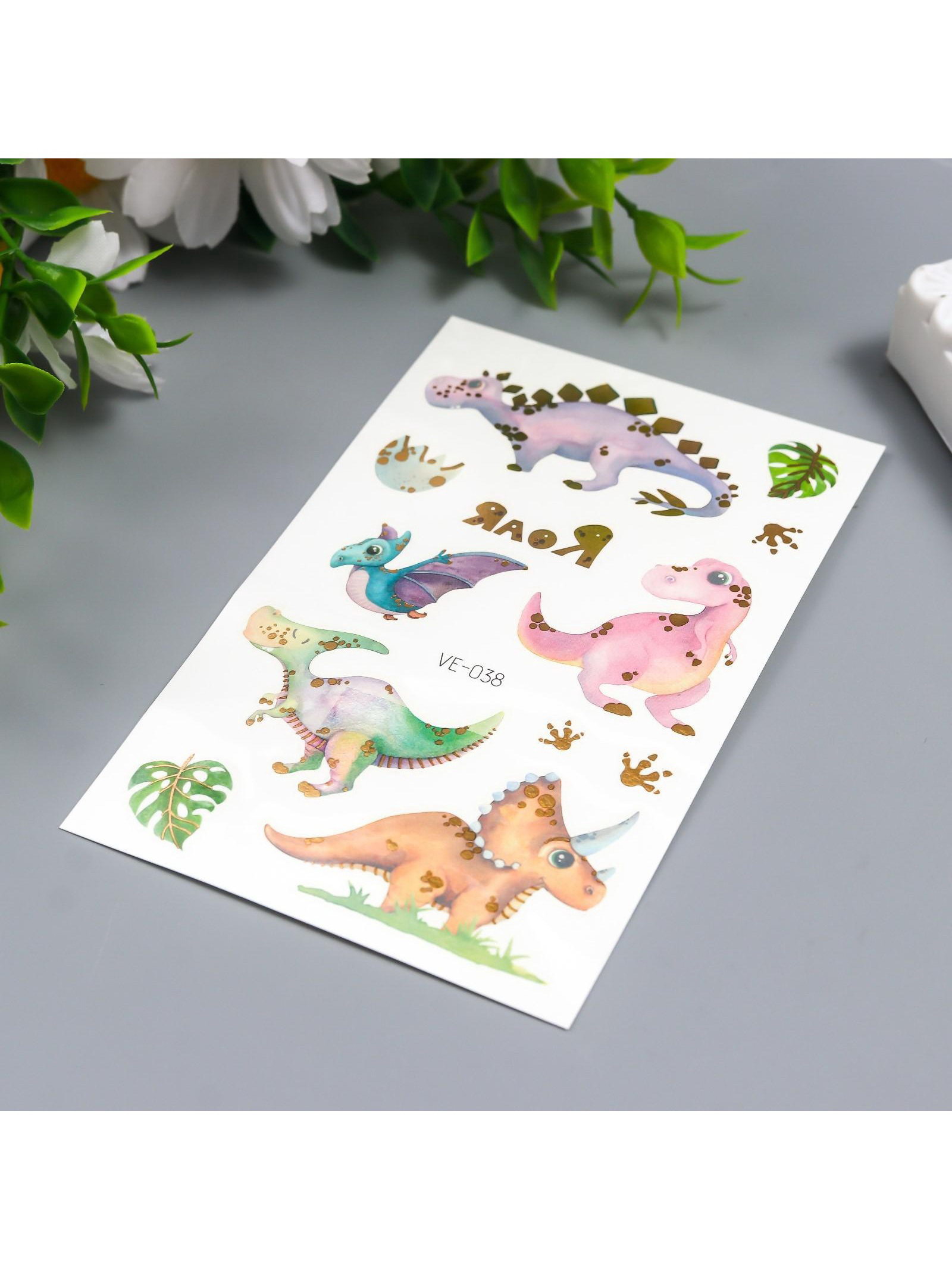 Татуировка на тело цветная "Малыши динозаврики" с золотом МИКС 12х7.5 см, 7.5x12 см., Китай