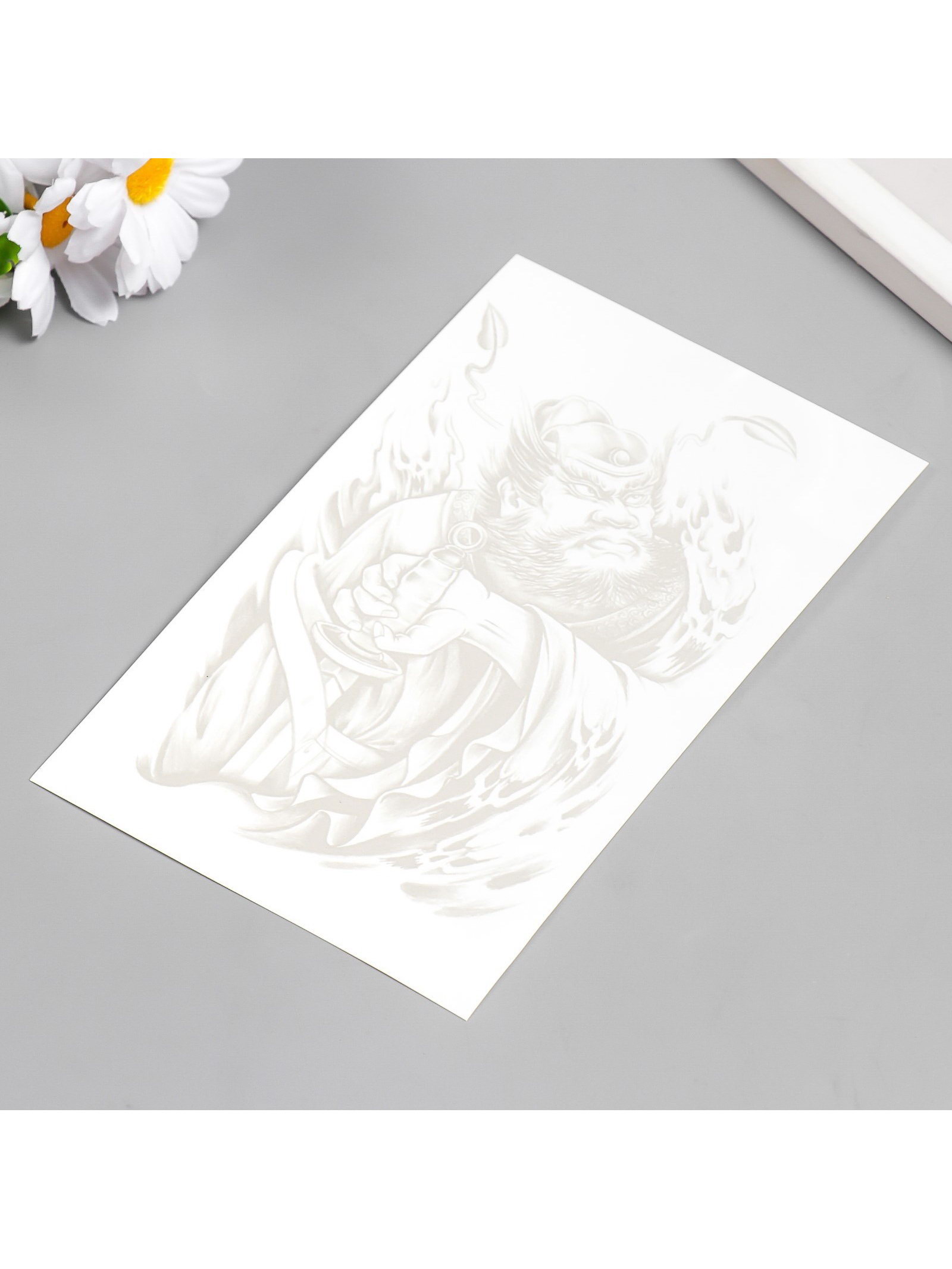 Переводная тату на тело "Китайский воин с веером", 18x11 см, 11x18 см., Китай
