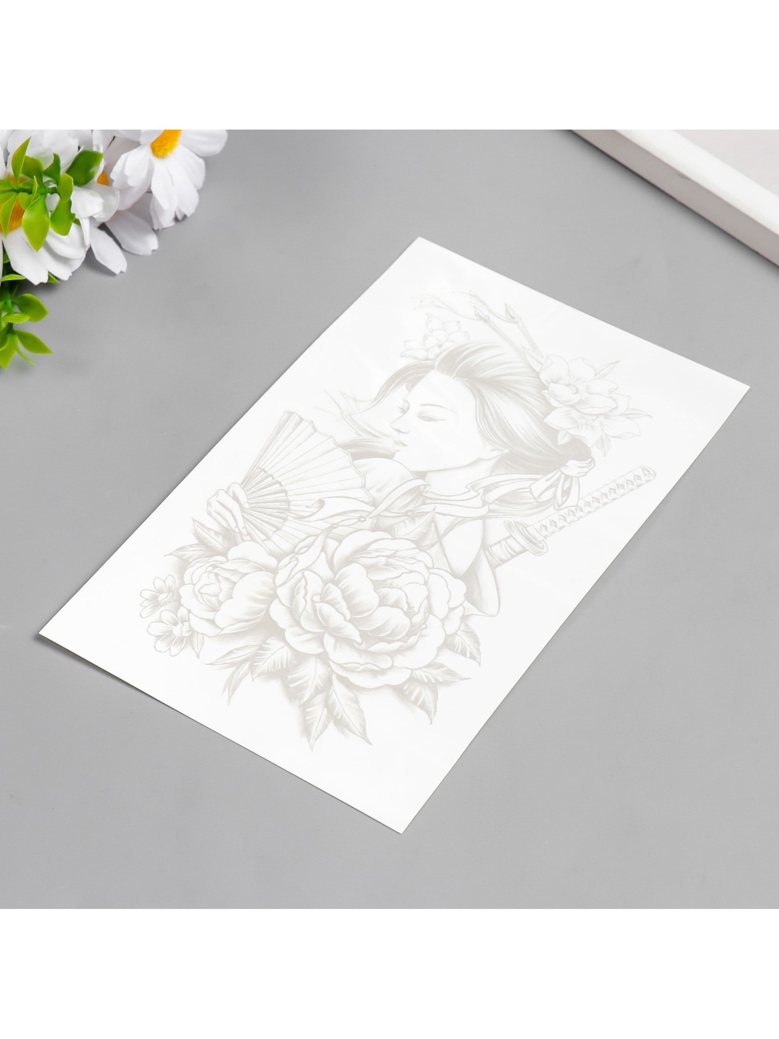 Переводная тату на тело "Гейша с мечом", 18x11 см, МИКС, 11x18 см., Китай
