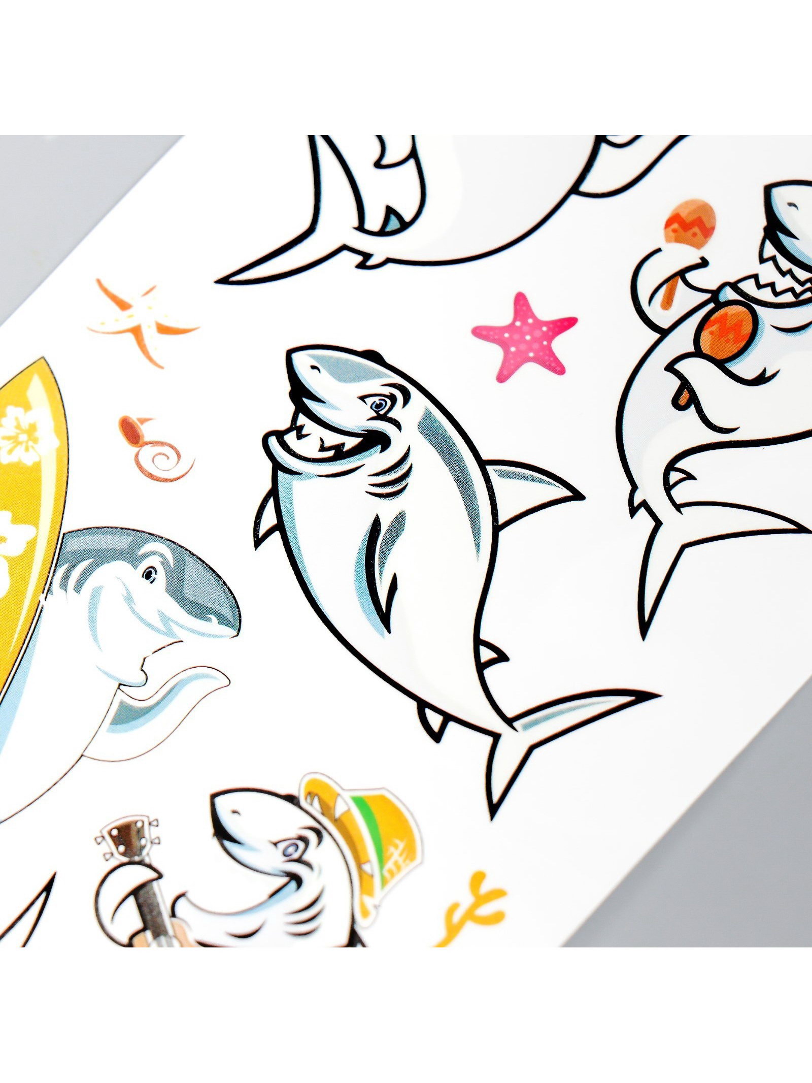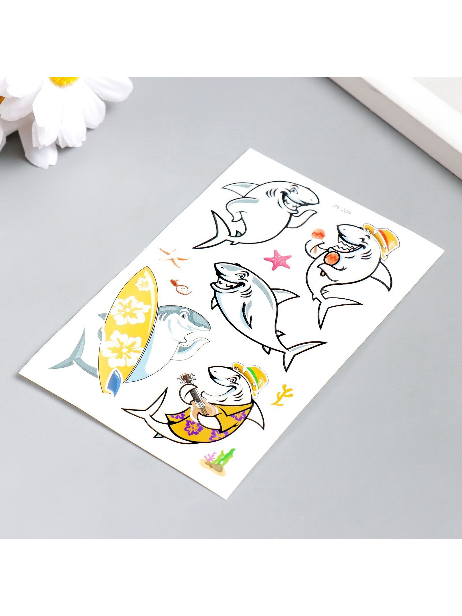 Переводные тату на тело цветные светящаяся "Акулы", 12x7.5 см, МИКС, 7.5x12 см., Китай