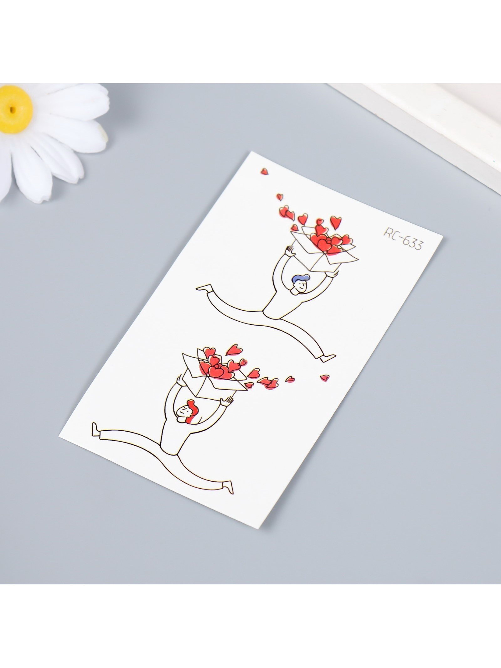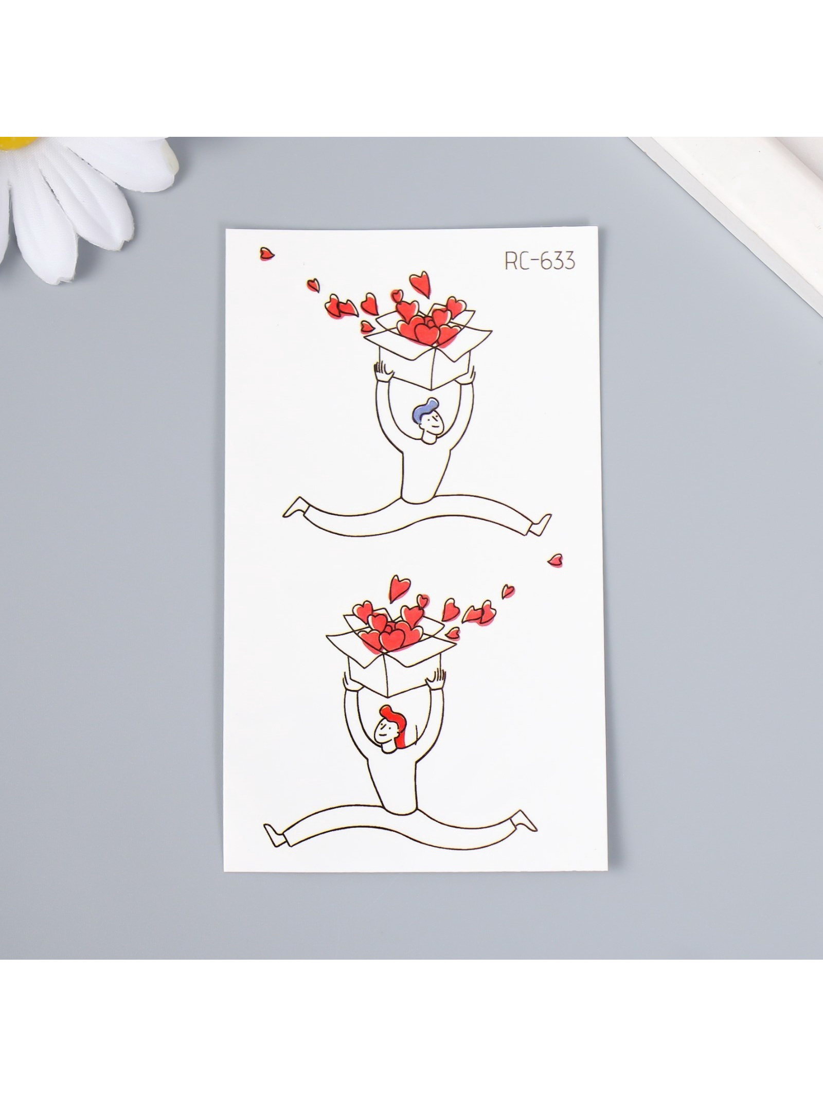 Переводные тату цветные "Парень с коробкой сердец", временные татуировки, 10.5x6 см, 6x10.5 см., Китай