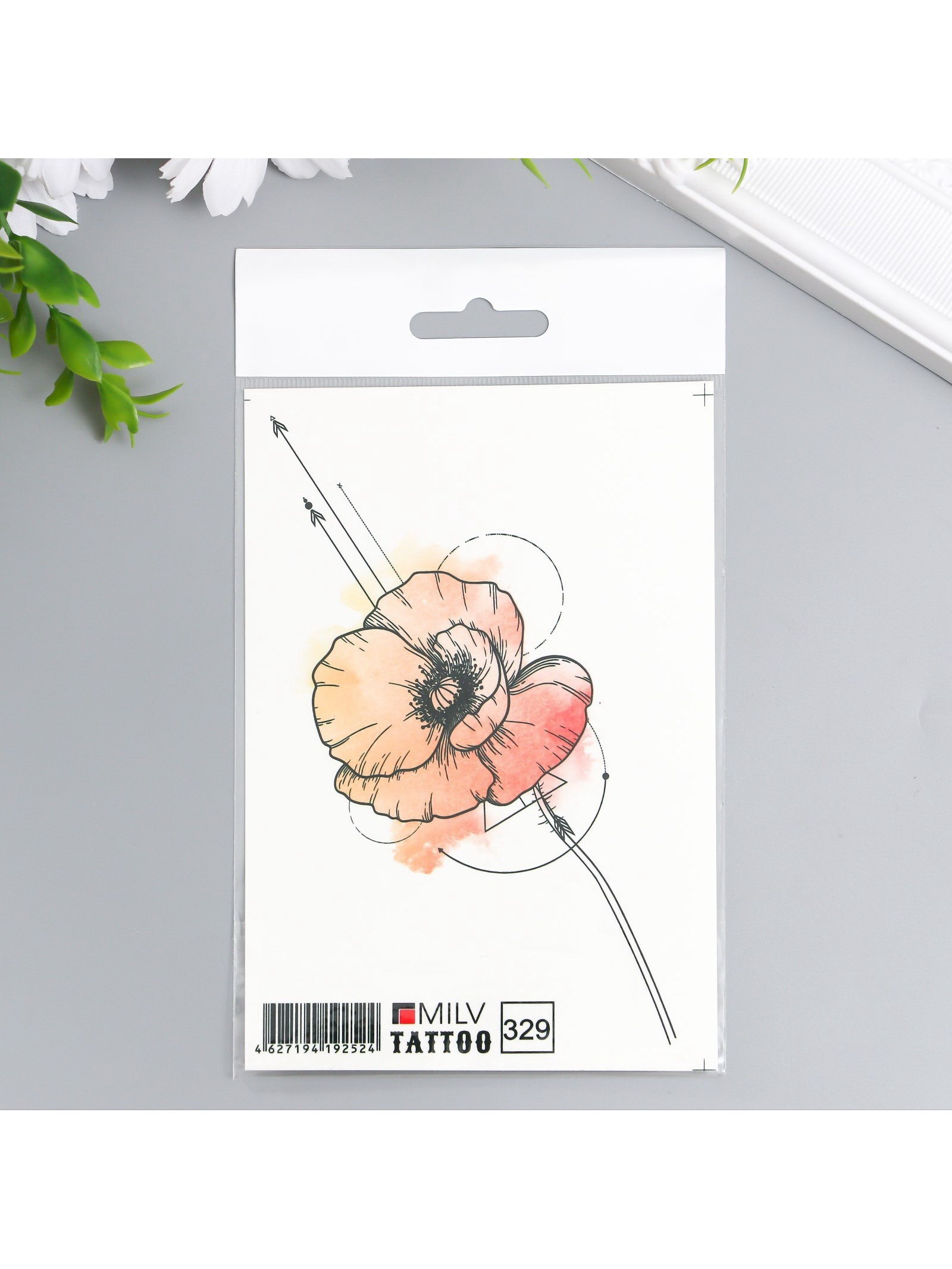 Переводная тату на тело "Мак", 10x15 см, Россия