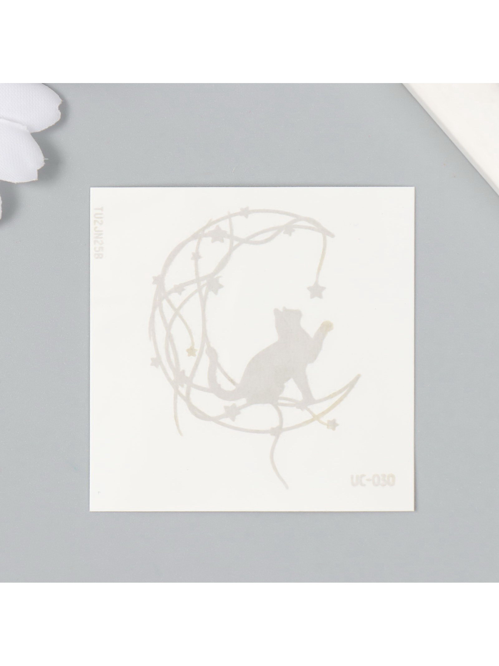 Переводная тату на тело синяя водостойкая "Кошка на месяце: ловит звёзды", 6x6 см, 6x6 см., Китай