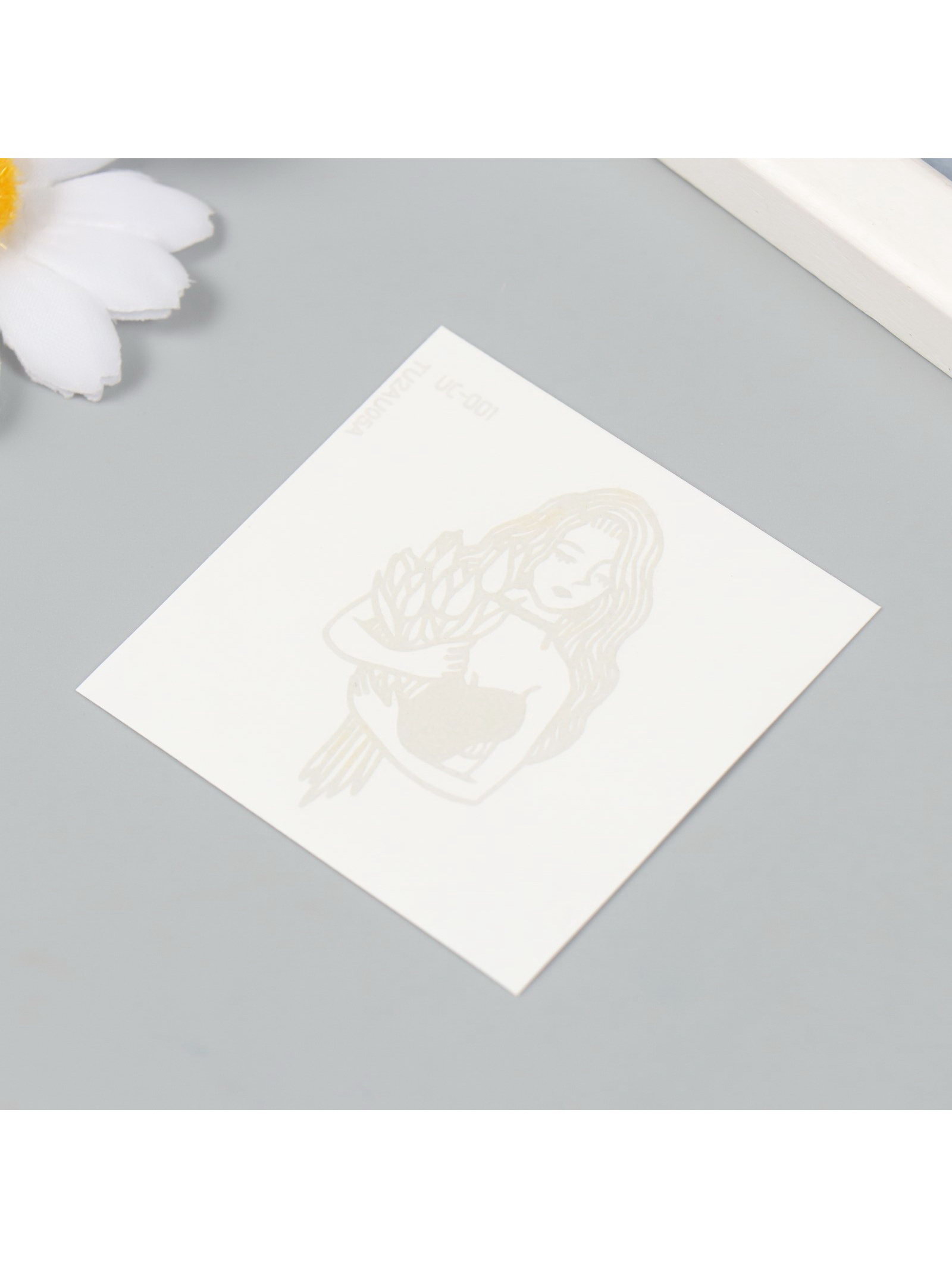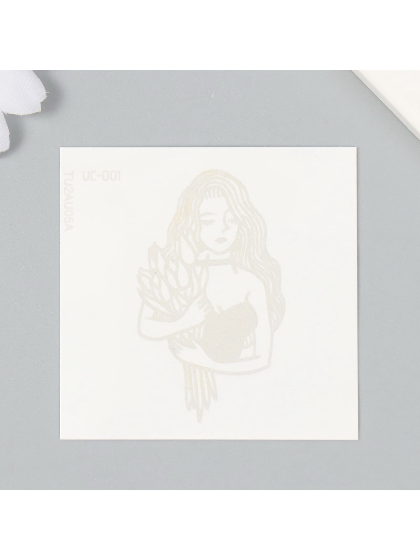 Переводная тату на тело синяя водостойкая "Девушка с тюльпанами", 6x6 см, 6x6 см., Китай