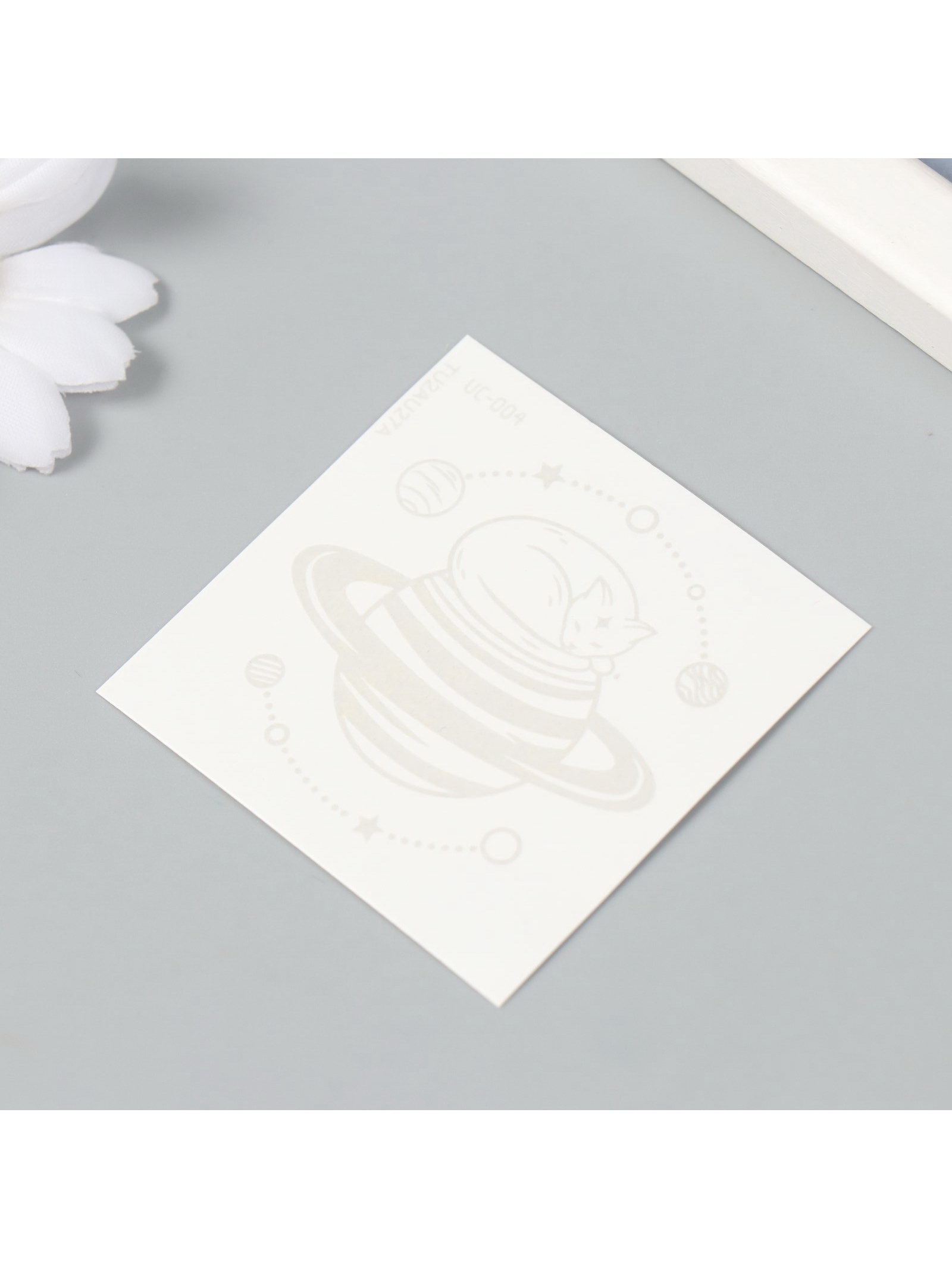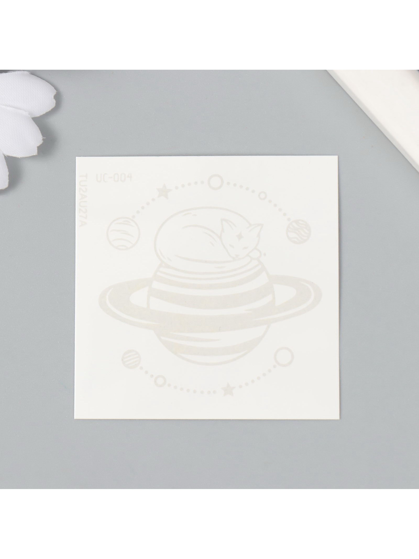 Переводная тату на тело синяя водостойкая "Спящий котик на планете", 6x6 см, 6x6 см., Китай