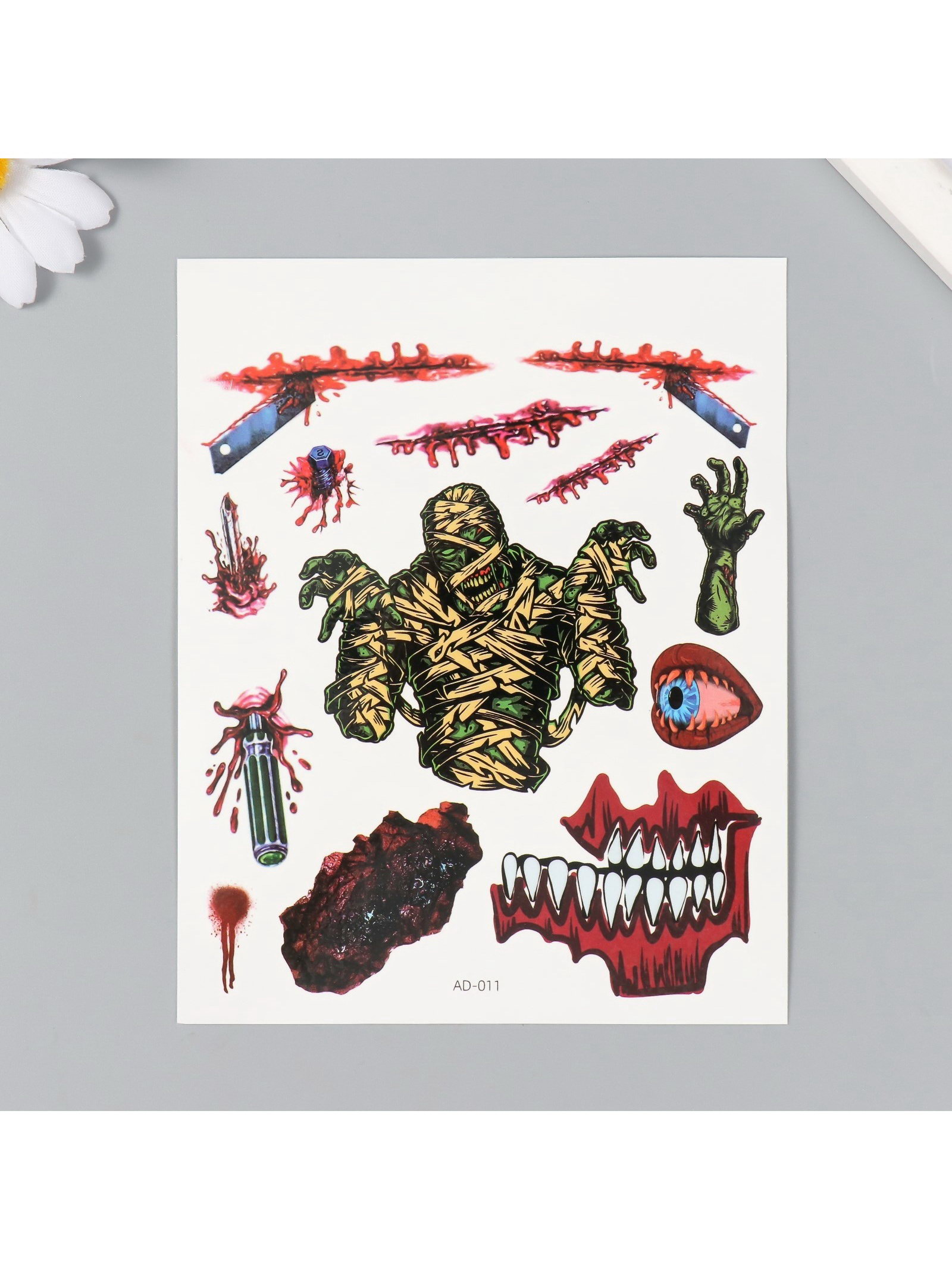 Этот набор - идеальный способ создать жутковатый, но стильный образ для Хэллоуина, косплея или театральной постановки. Пусть ваша мумия расскажет историю, которой уже тысячи лет! Для достижения максимального эффекта рекомендуем сочетать с соответствующим гримом и костюмом. Татуировка держится до 5 дней при правильном уходе. | ||