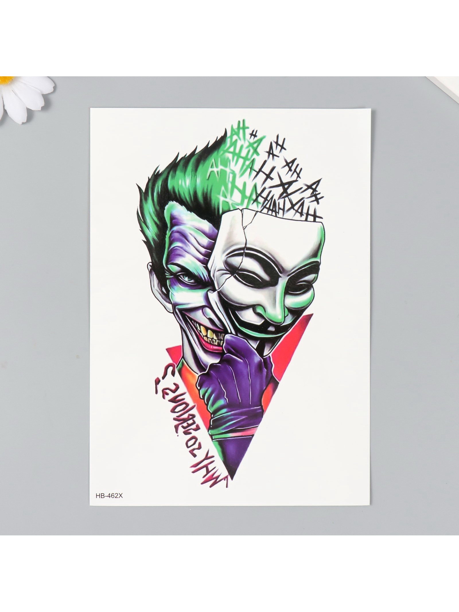 Переводная тату на тело цветная "Джокер: 2 лица", 14.8x21 см, 14.8x21 см., Китай