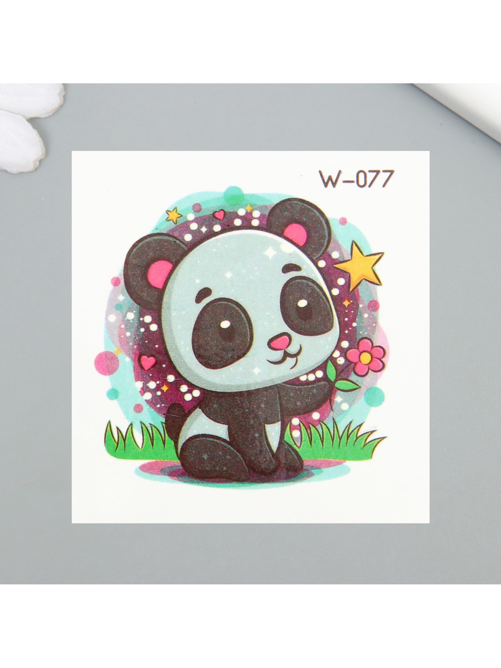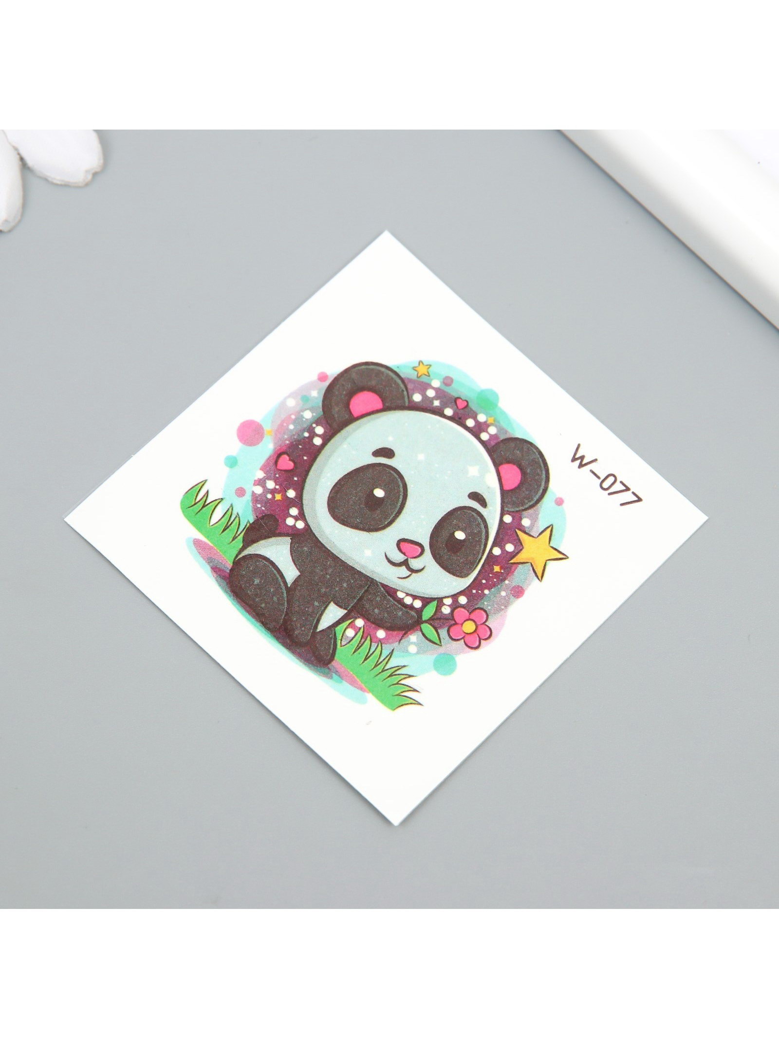 Переводная тату на тело цветная "Малыш панды с цветочком", 6x6 см, 6x6 см., Китай