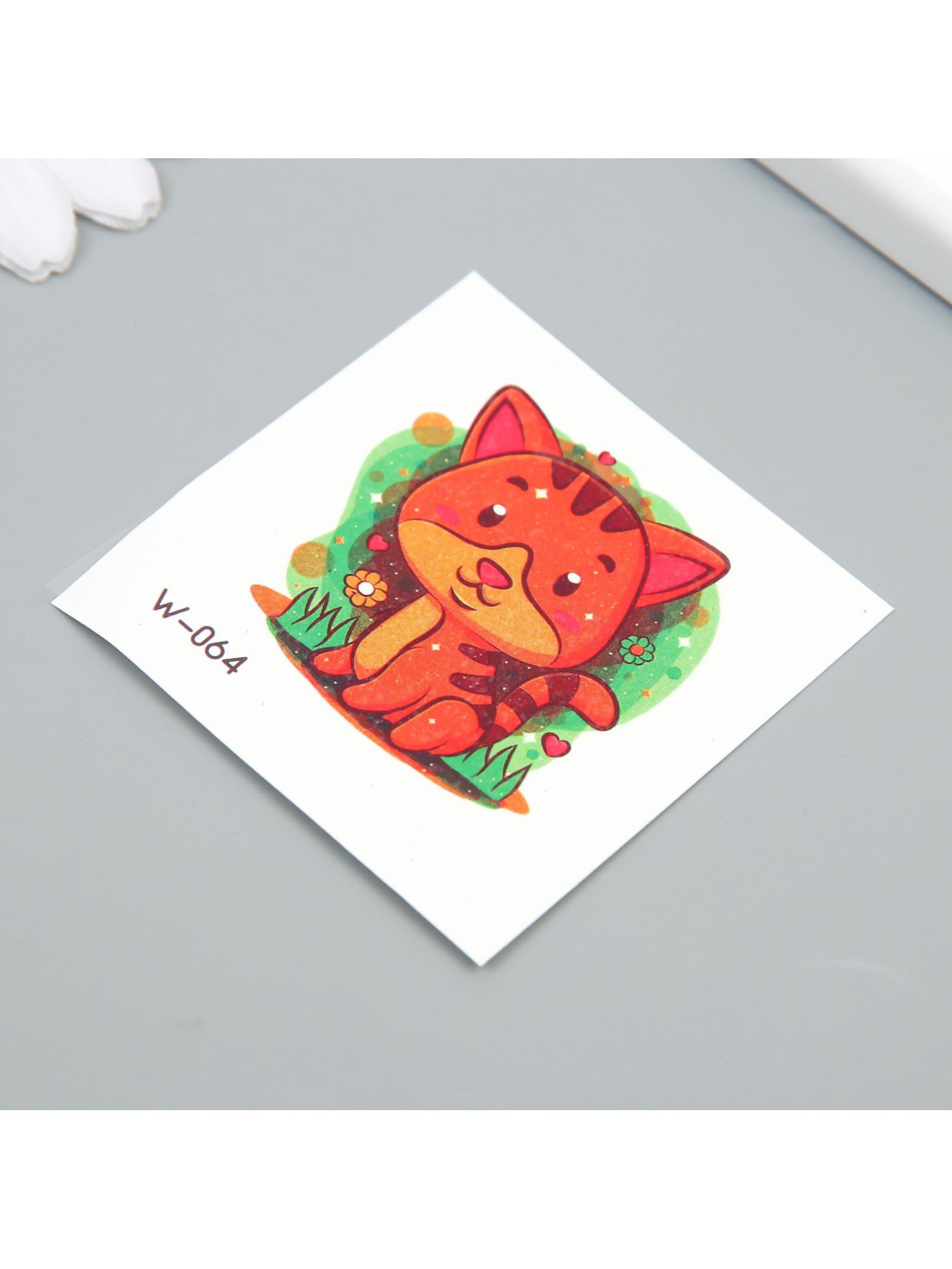 Переводная тату на тело цветная "Рыжий полосатый котёнок", 6x6 см, 6x6 см., Китай