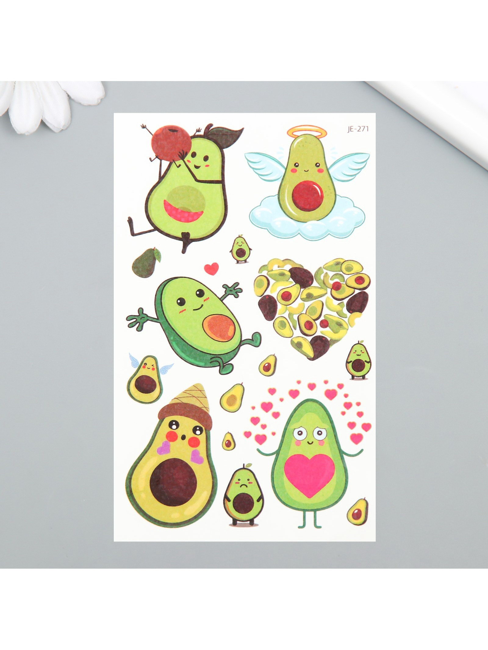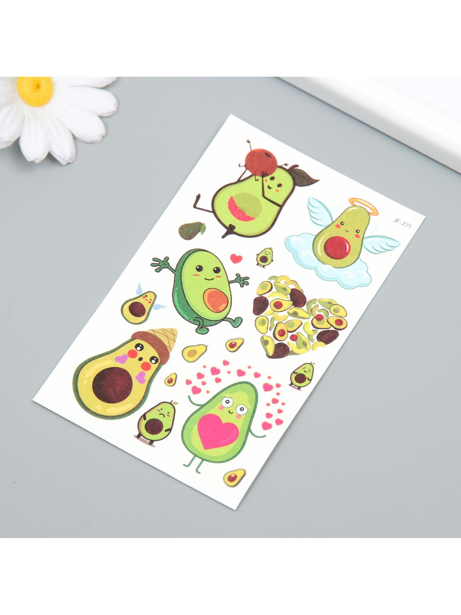 Переводные тату на тело цветные "Авокадинки", 7.5x12 см, 7.5x12 см., Китай