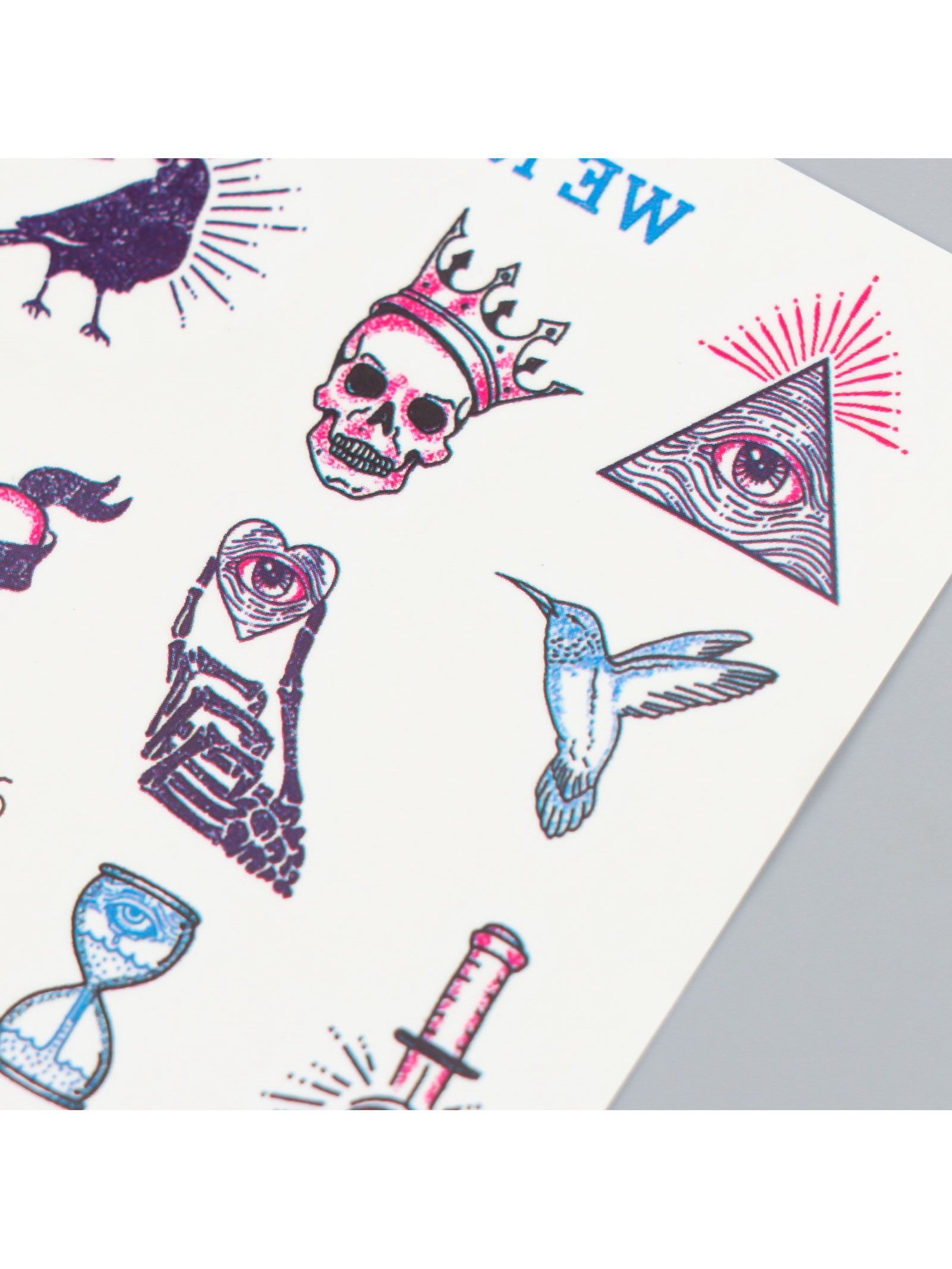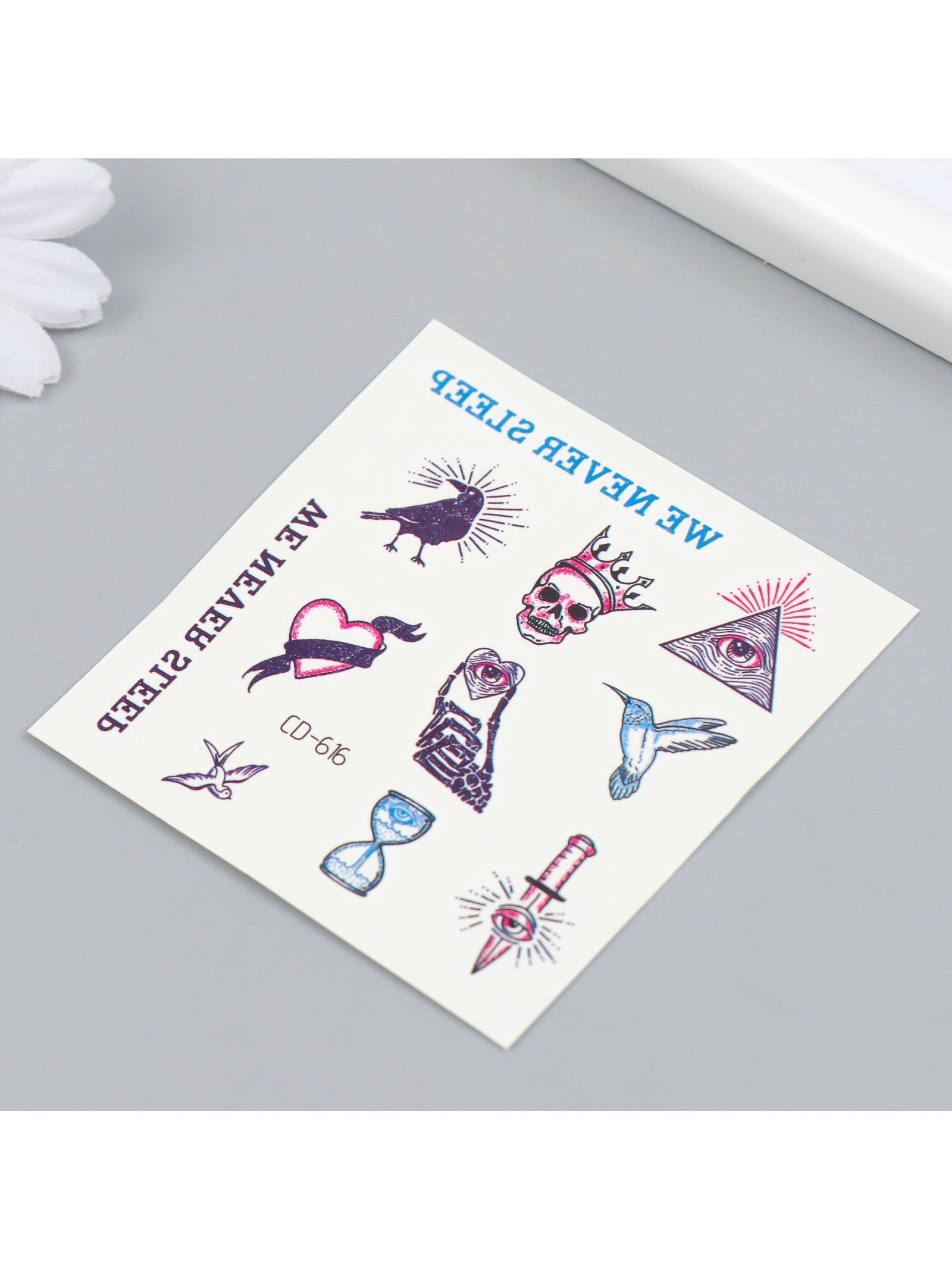 Переводные тату на тело цветные "Бессонница", 8x7.5 см, 7.5x8 см., Китай