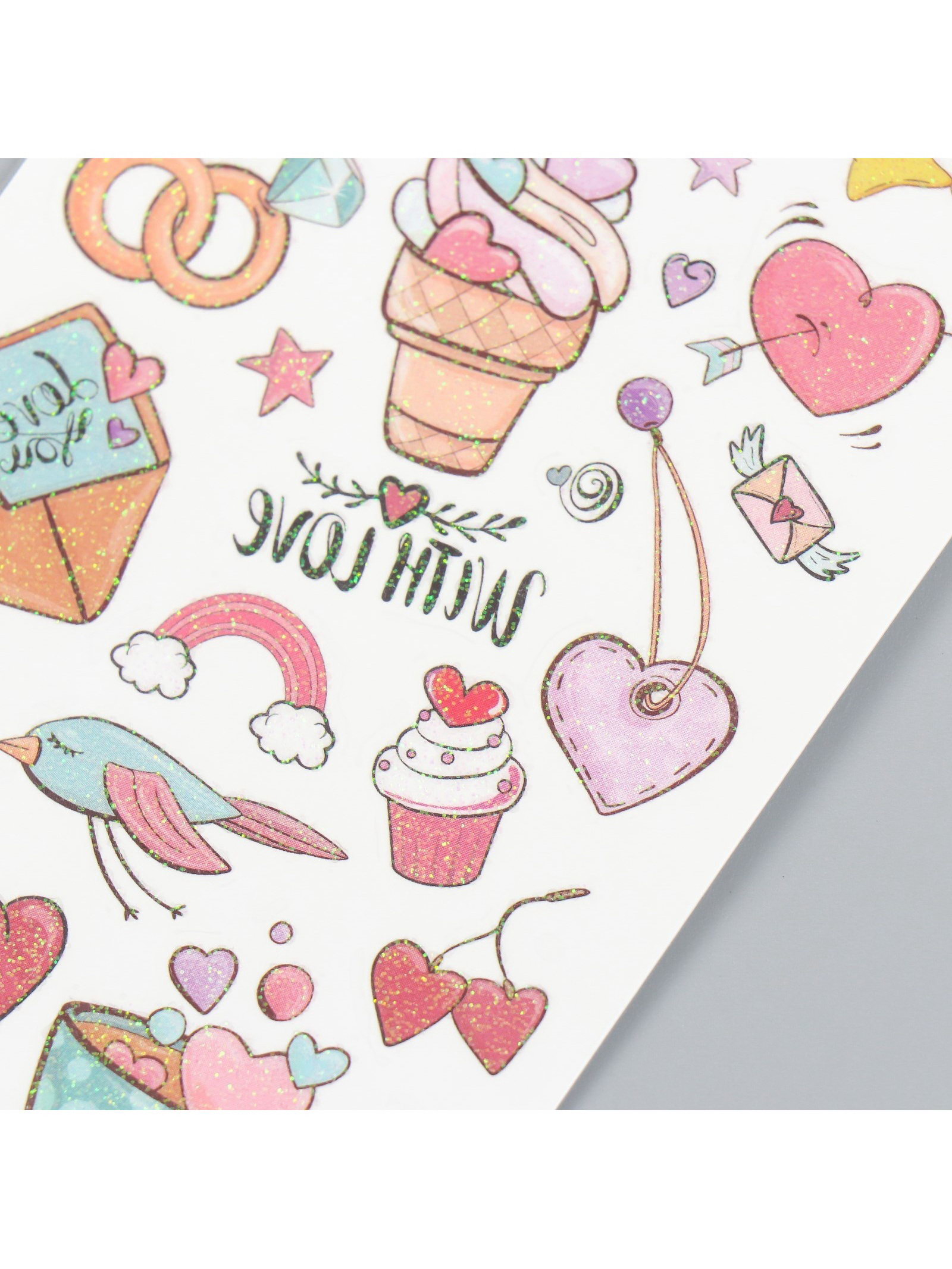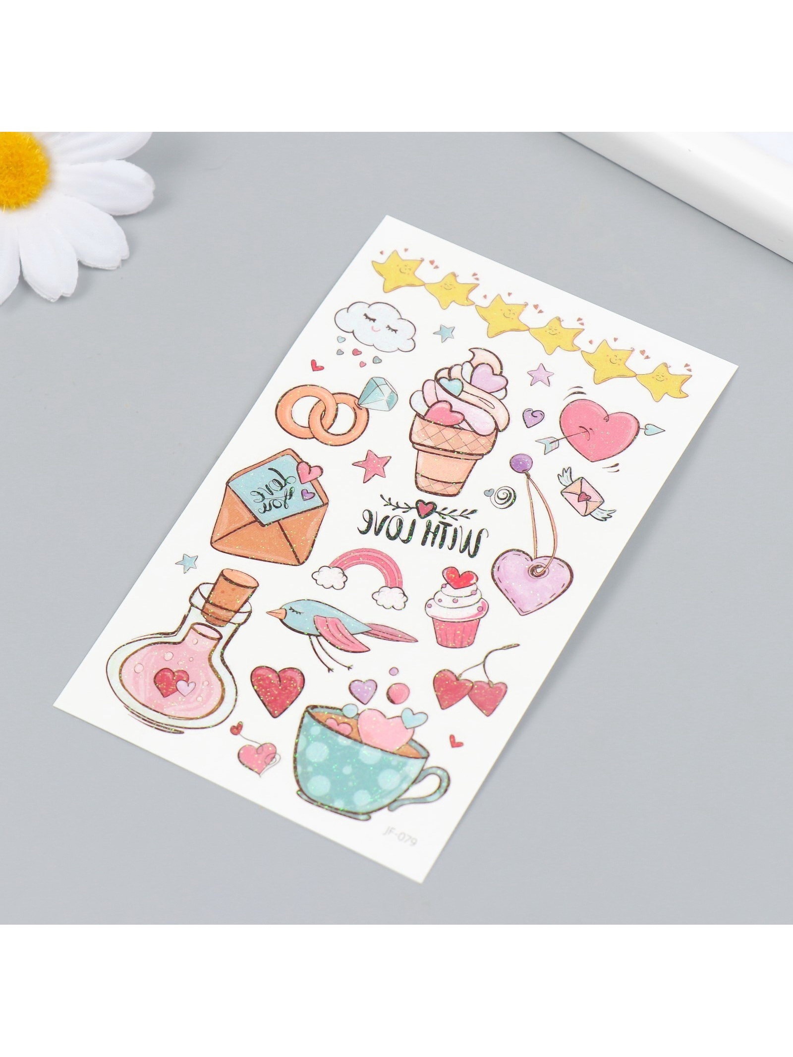 Переводные тату цветные "Письмо любви", временные татуировки с блёстками, 12x7.5 см, 7.5x12 см., Китай