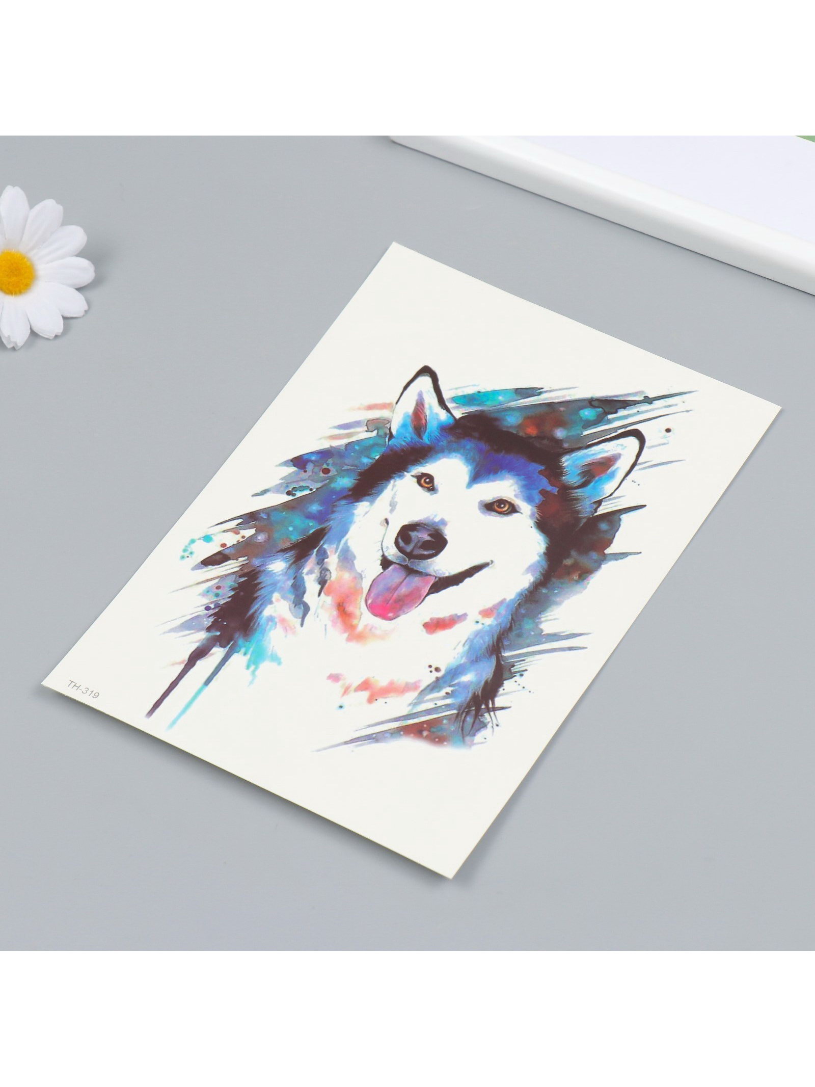 Переводная тату на тело цветная "Хаски", 21x14.8 см, 14.8x21 см., Китай
