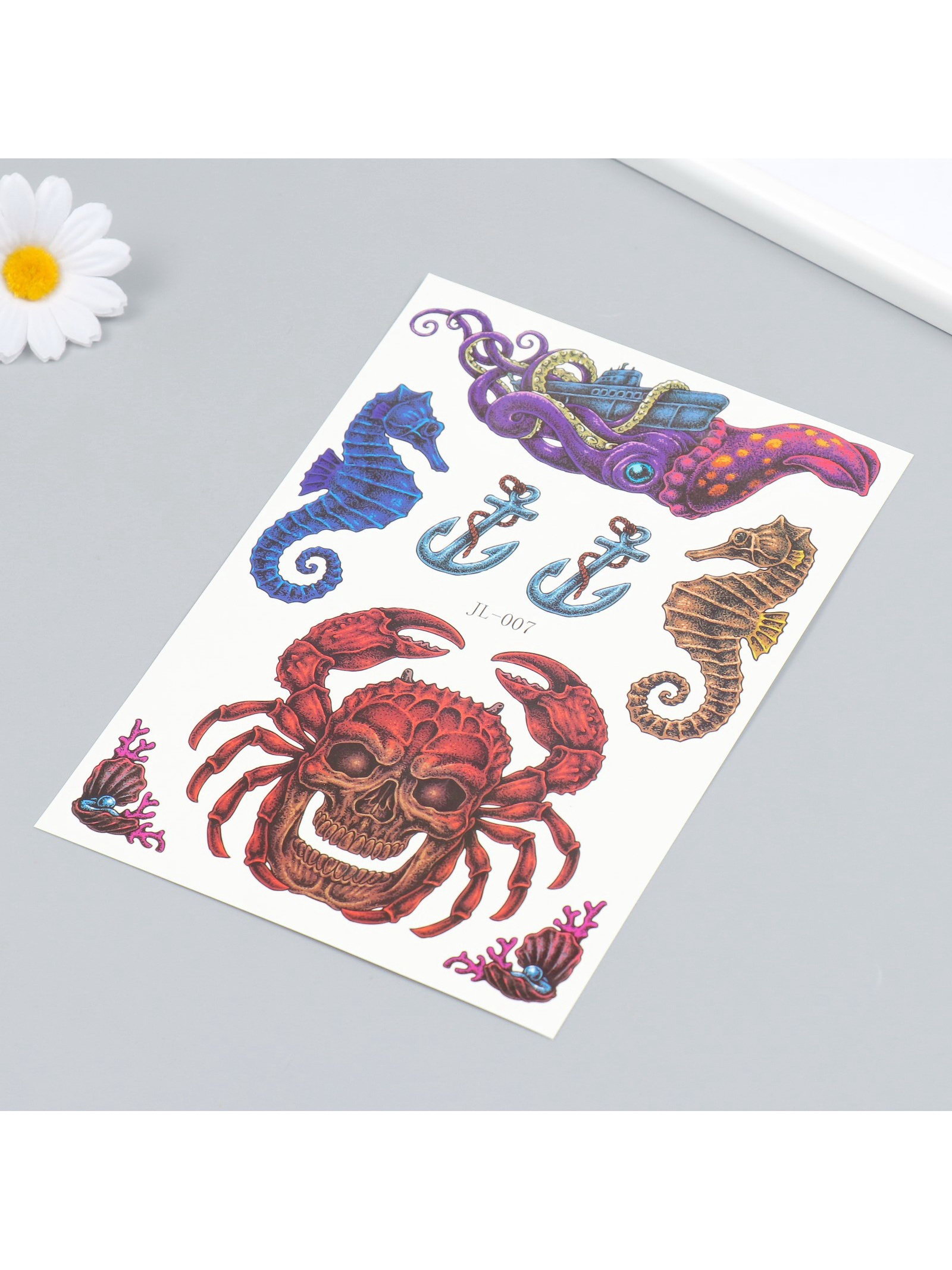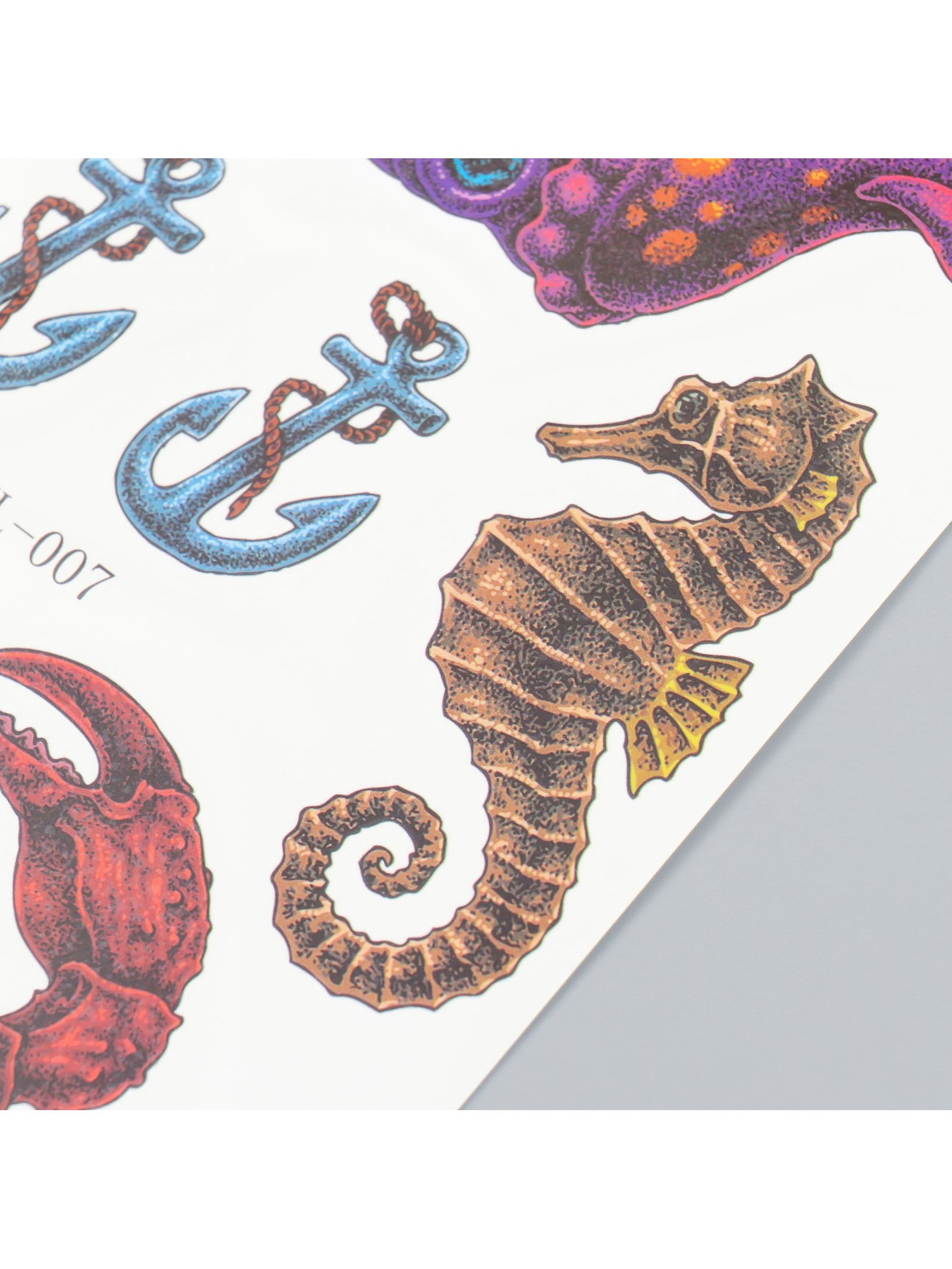 Переводные тату на тело цветные "Подводные мифы", 21x14.8 см, 14.8x21 см., Китай