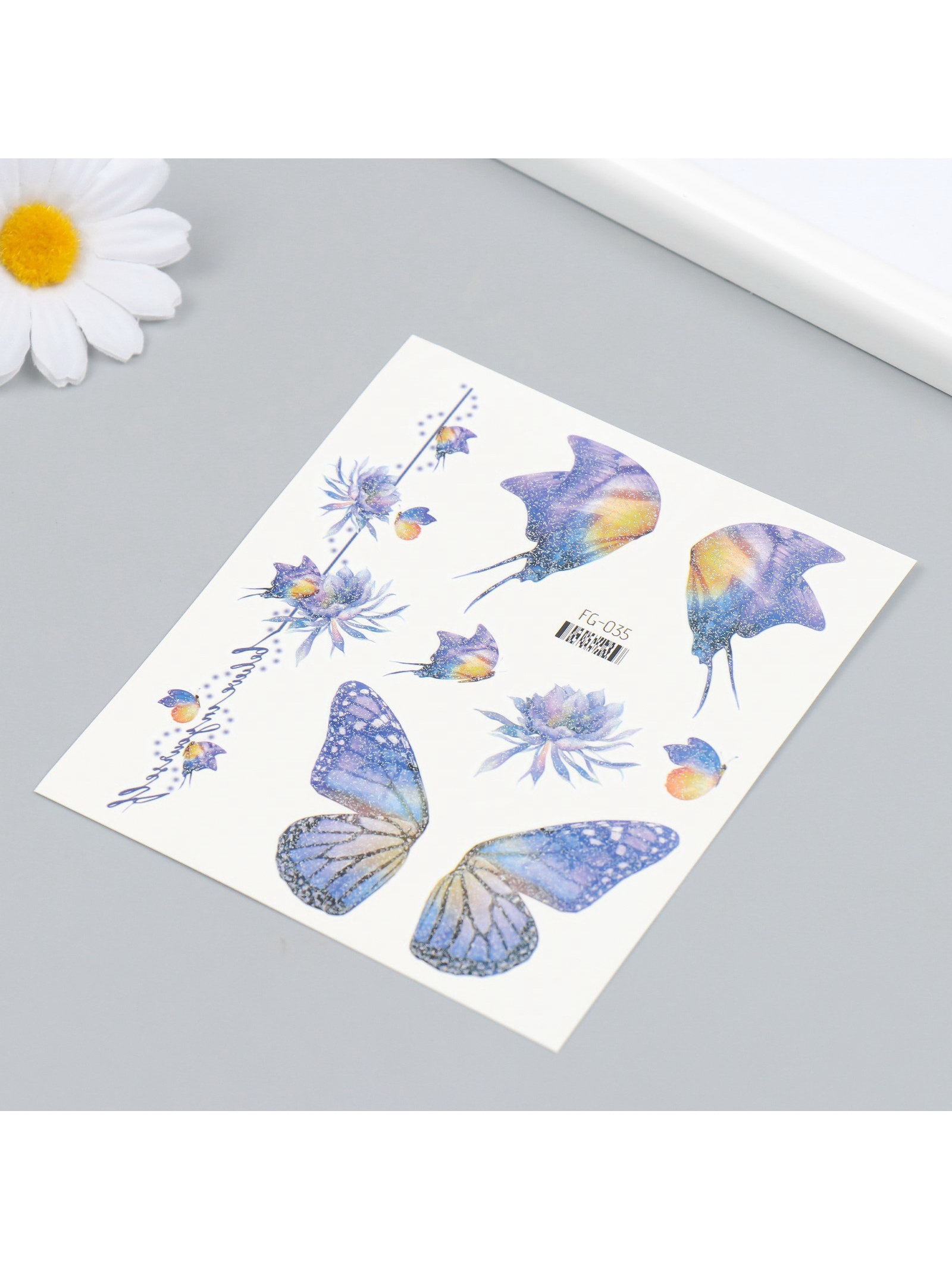 Вид наклейки: Пластиковая, Татуировка, Фигурная Для кого: Для девочки, Для женщины Место приклеивания: Запястье, Универсальное Вид: С блёстками, Цветные Тематика праздника: 8 Марта, Универсальная тематика Размер упаковки: 10.5 x 0.1 x 12 см. Цвет: Разноцветный Вид упаковки: Пакет Адресат: Без адресата Набор: Нет Набор: Нет tnved: 4908900000 Тематика: Бабочки | ||