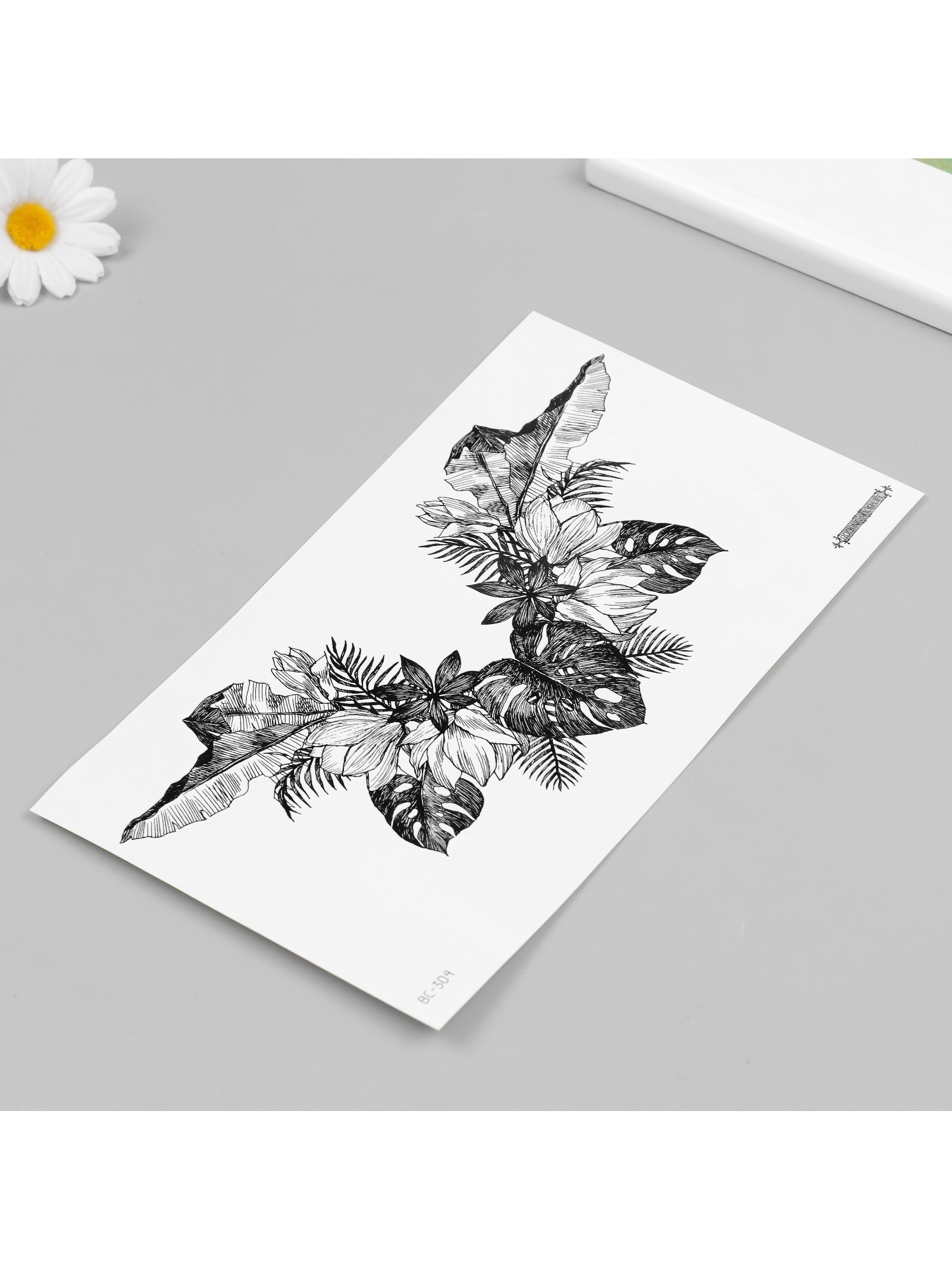 Переводная тату на тело чёрная "Украшение из листочков", 24x13.7 см, 13.7x24 см., Китай