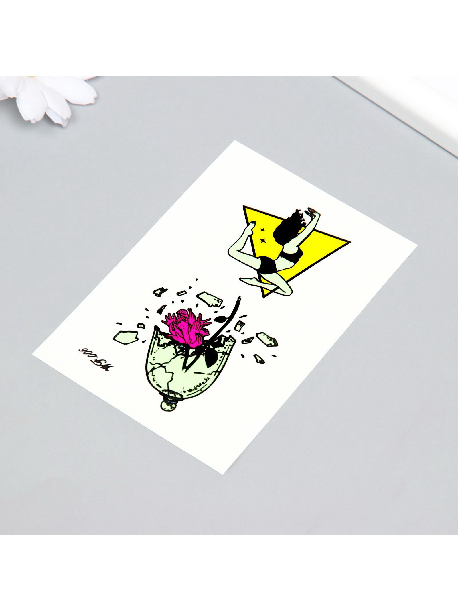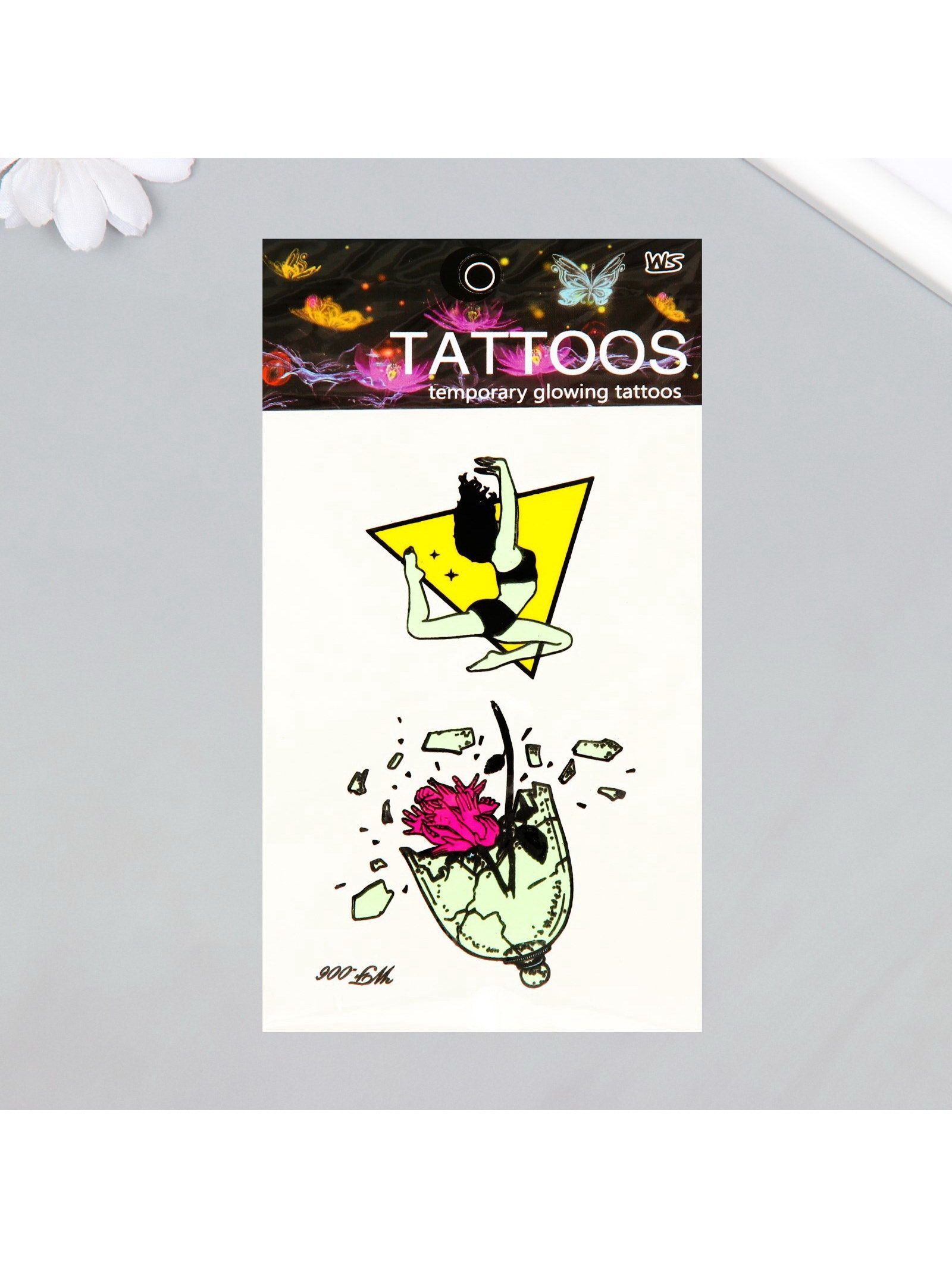 Переводные тату на тело светящиеся цветные "Девушка и роза в осколках", 14.3x7.5 см, 7.5x14.3 см., Китай