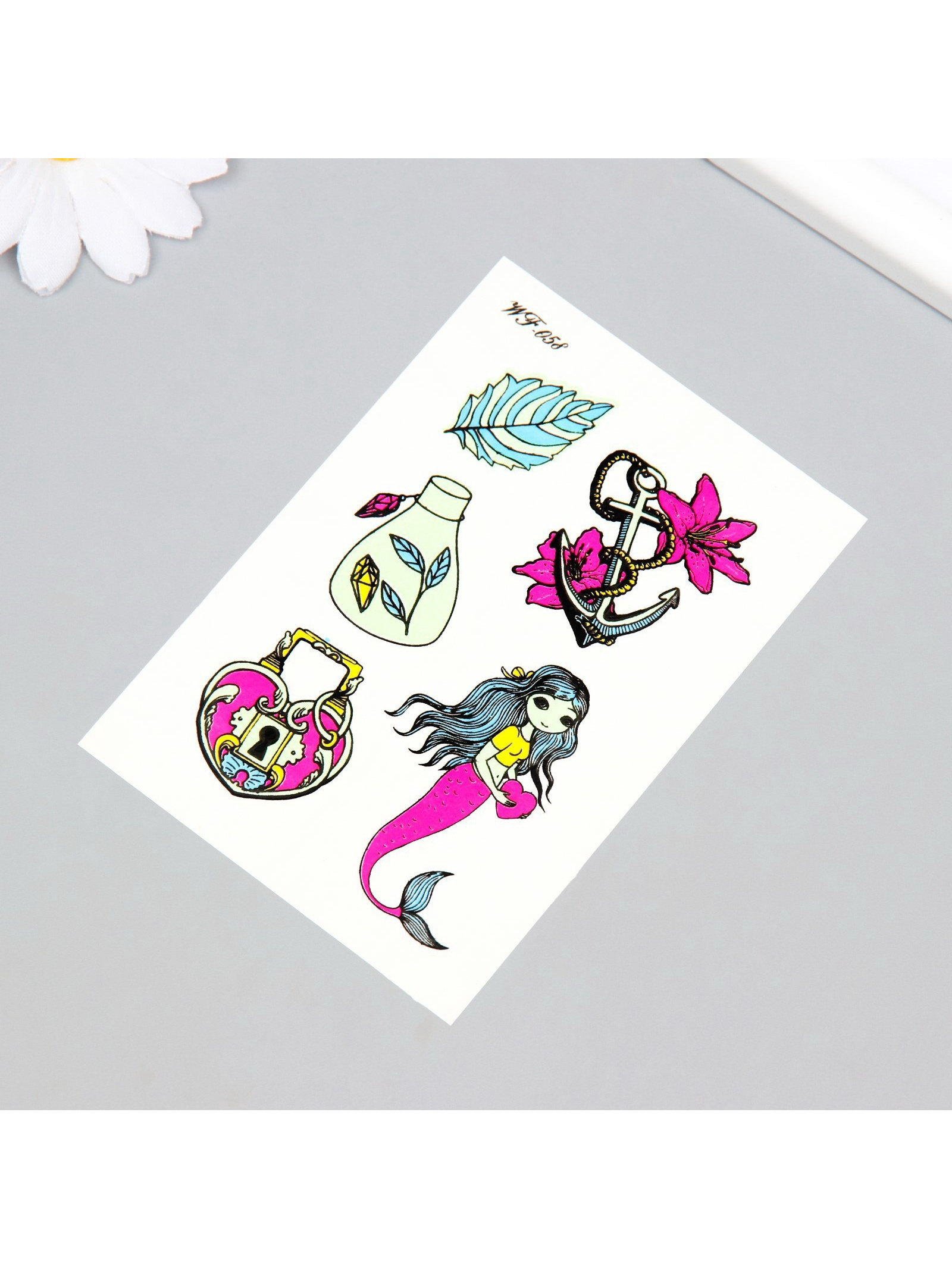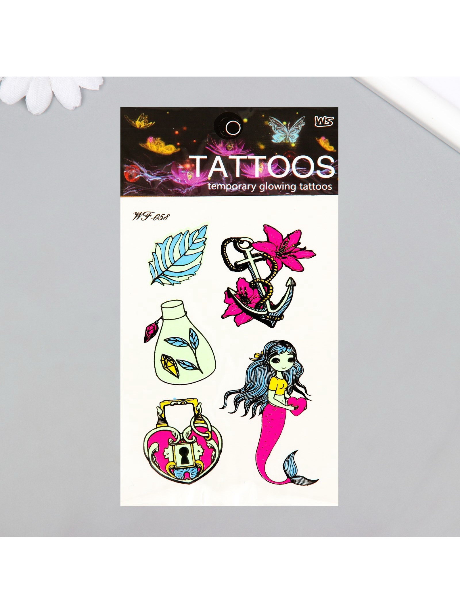 Переводные тату цветные "Любовь русалки", временные татуировки светящиеся, 14.3x7.5 см, 7.5x14.3 см., Китай
