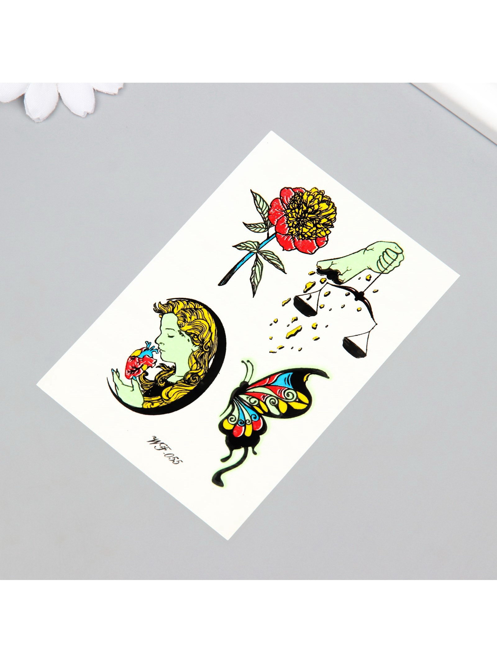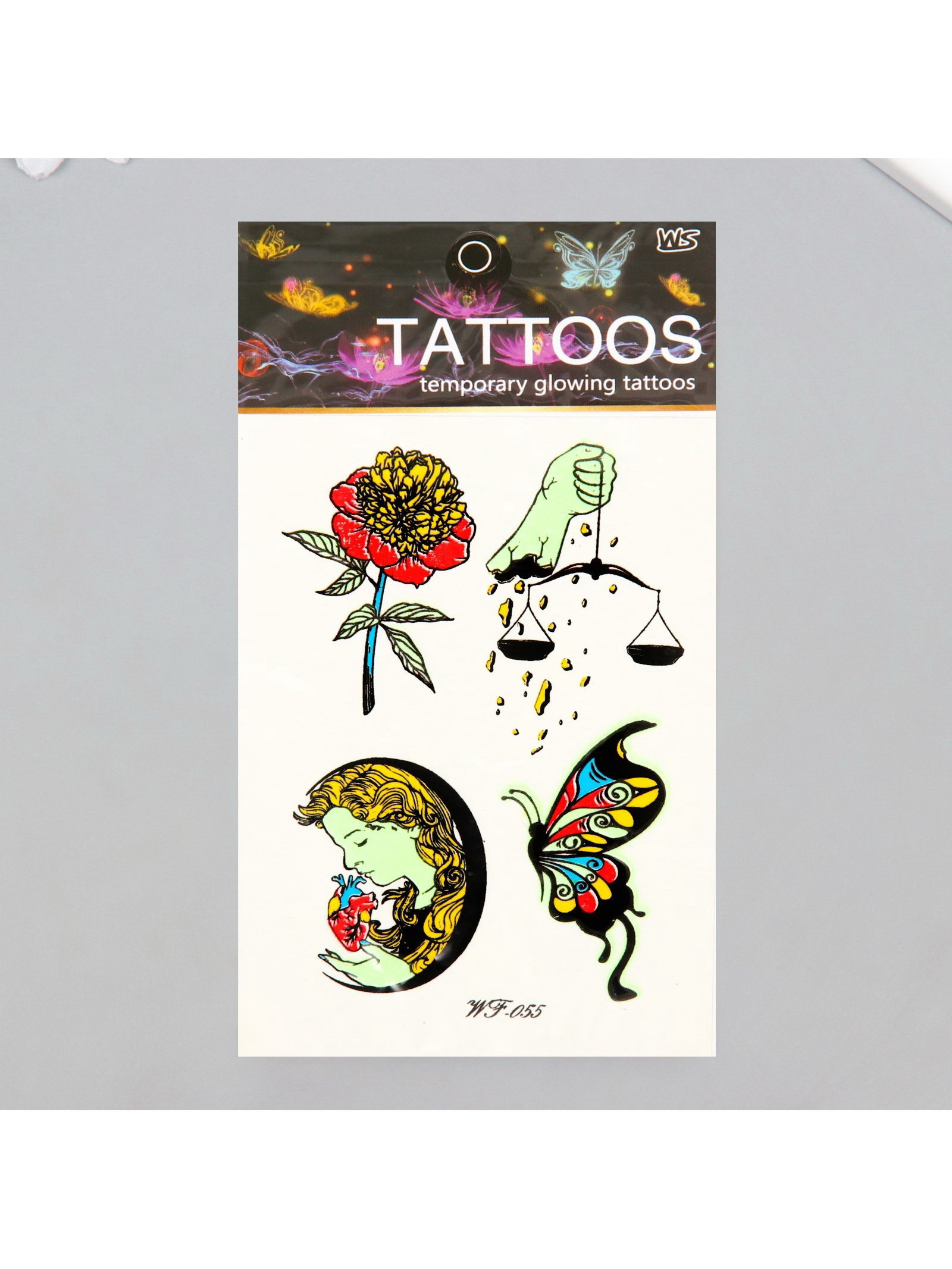 Переводные тату на тело светящиеся цветные "Выбор сердца", 14.3x7.5 см, 7.5x14.3 см., Китай