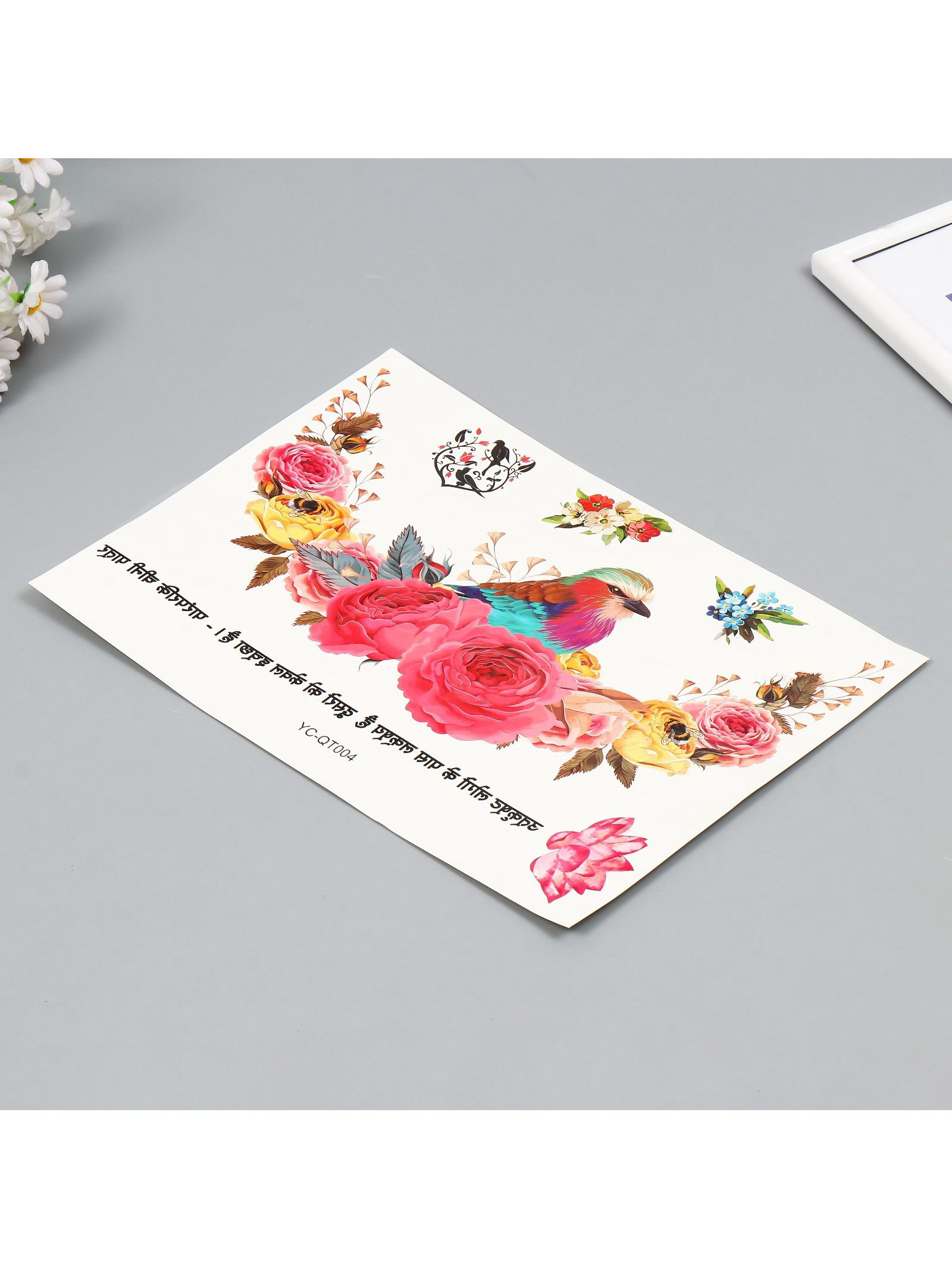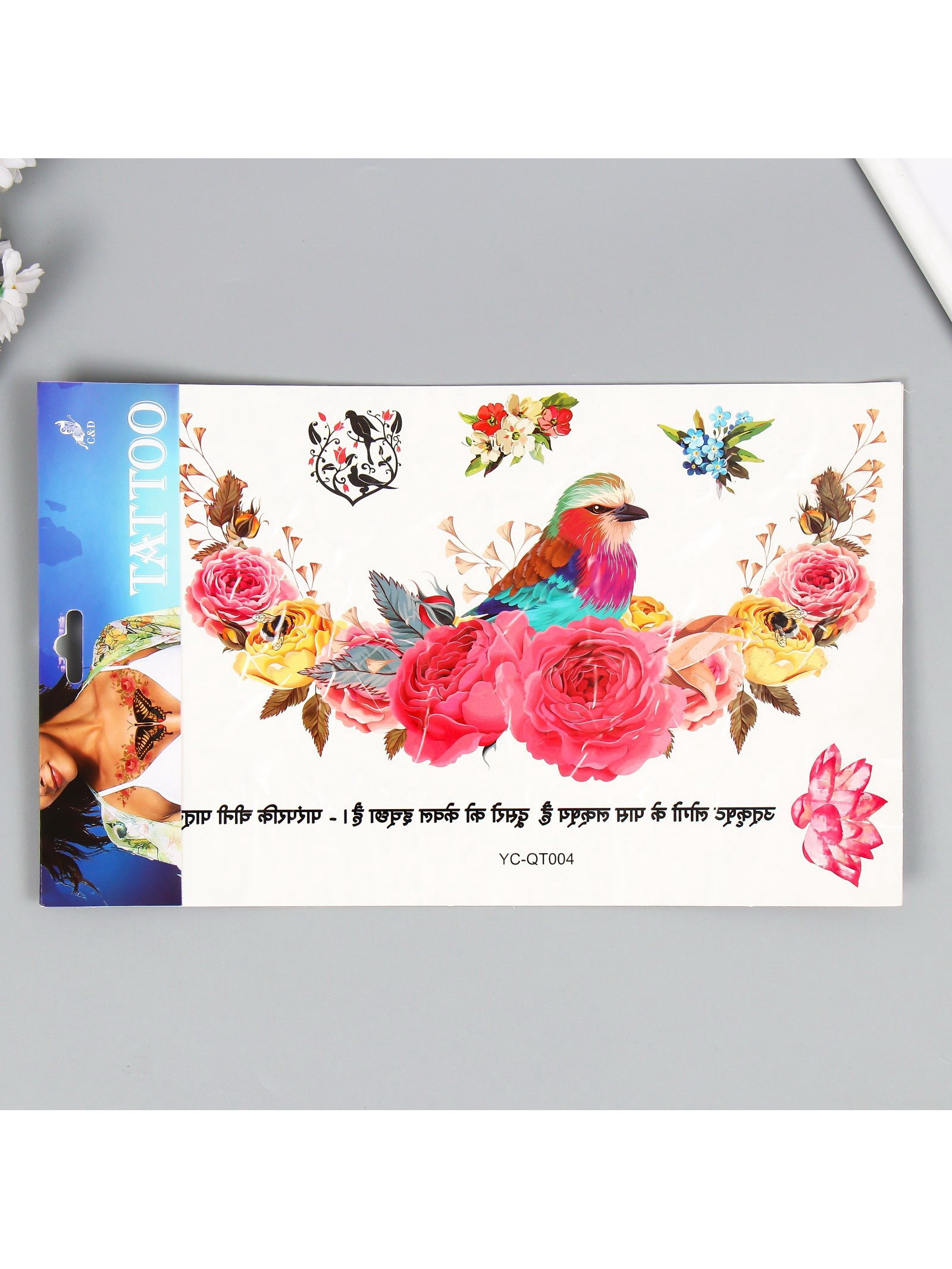 Переводная тату на тело цветная "Птица в розах", 36.5x22 см, 22x36.5 см., Китай