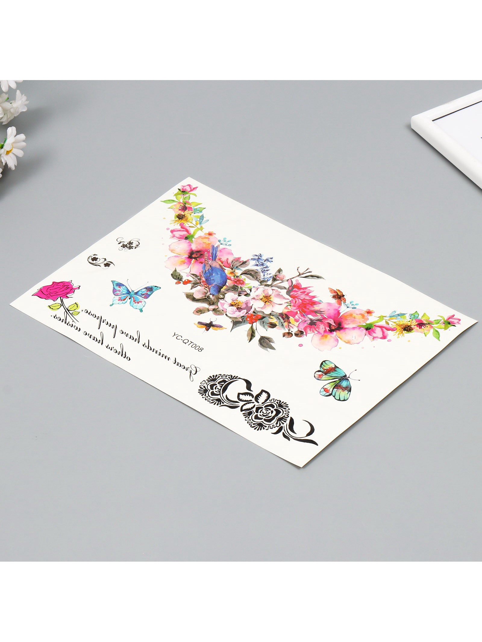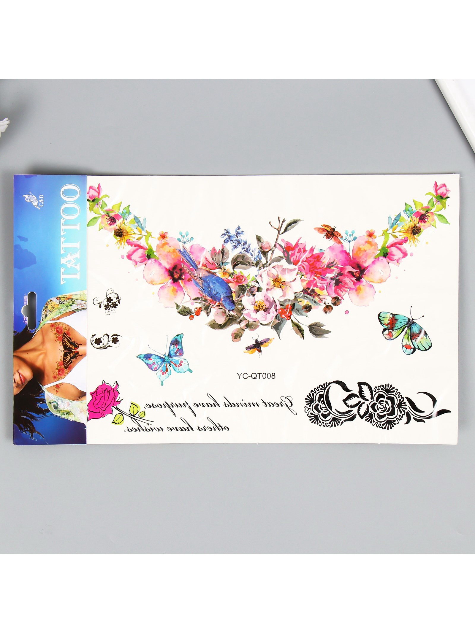 Переводная тату на тело цветная "Цветочное ожерелье", 36.5x22 см, 22x36.5 см., Китай