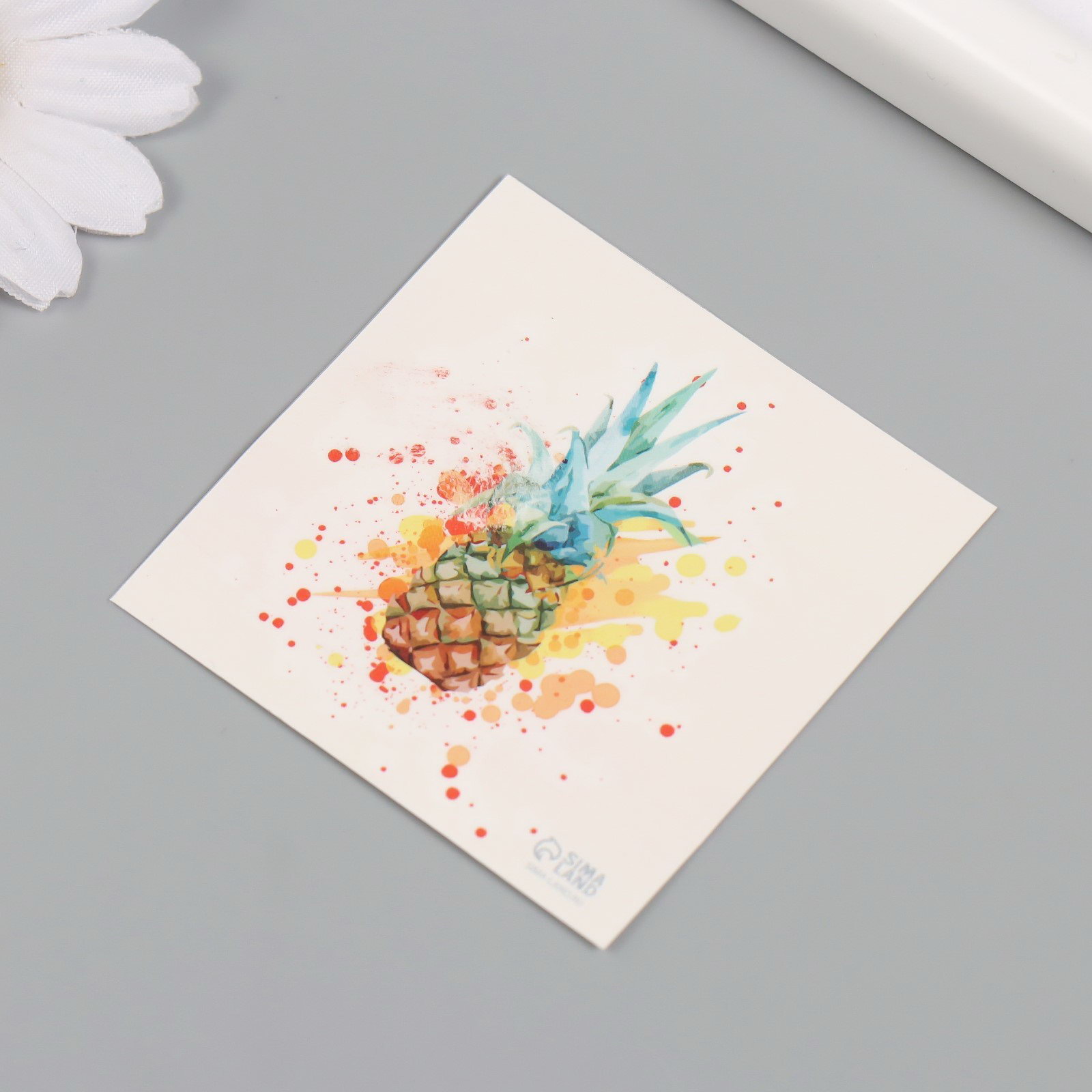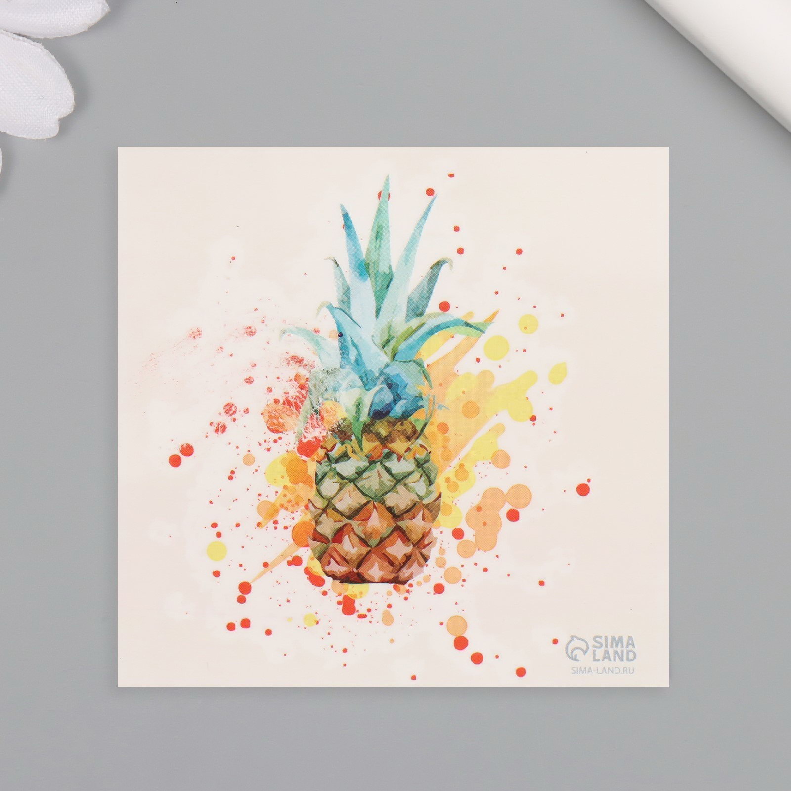Переводная тату на тело цветная "Акварель. Ананас", 6x6 см, 6x6 см., Арт Узор, КИТАЙ