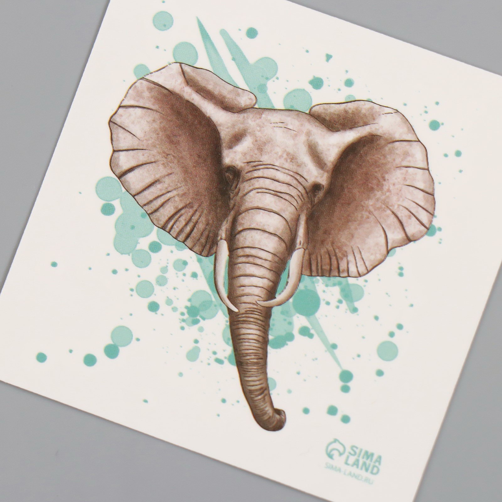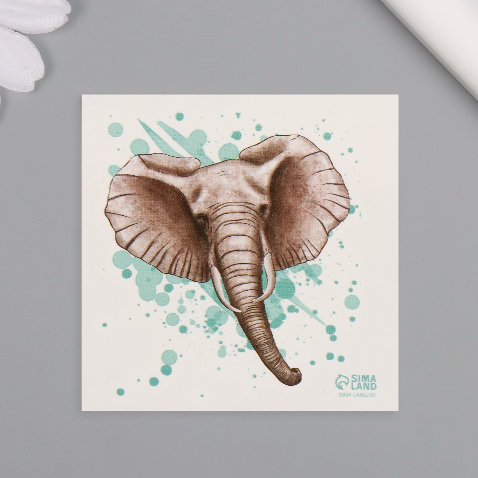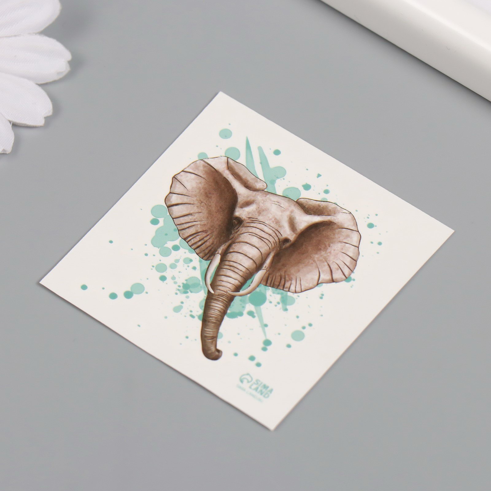 Переводная тату на тело цветная "Акварель. Слон", 6x6 см, 6x6 см., Арт Узор, Китай