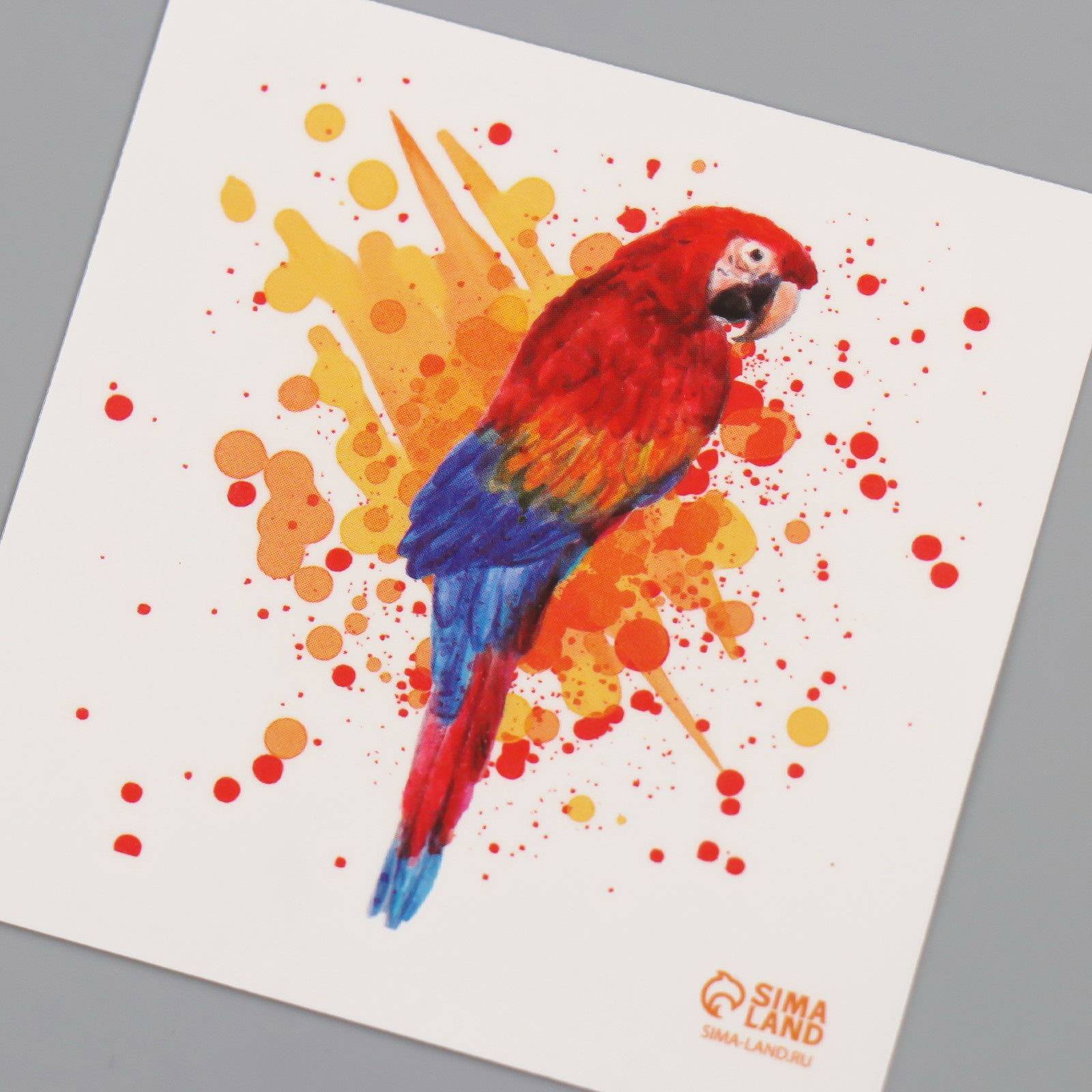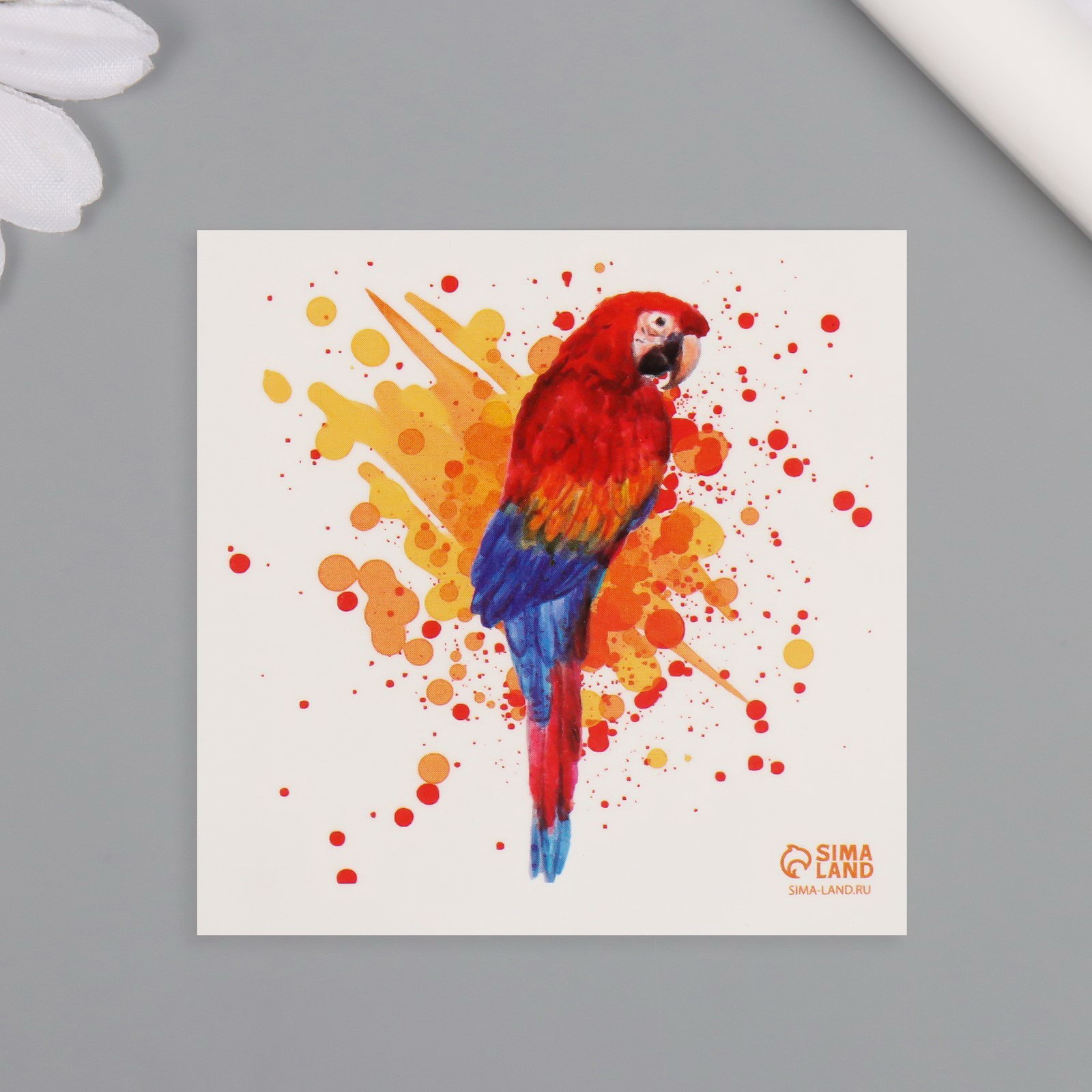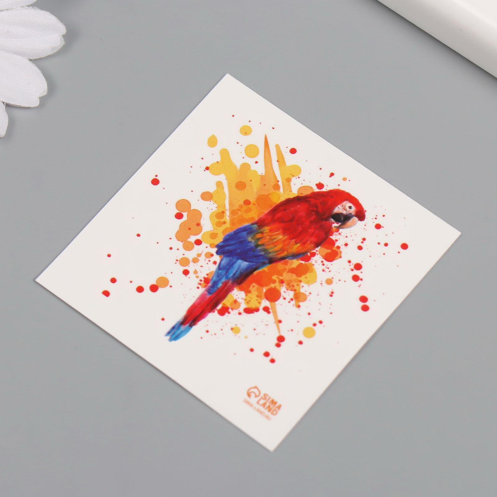 Переводная тату на тело цветная "Акварель. Попугай Ара", 6x6 см, 6x6 см., Арт Узор, Китай