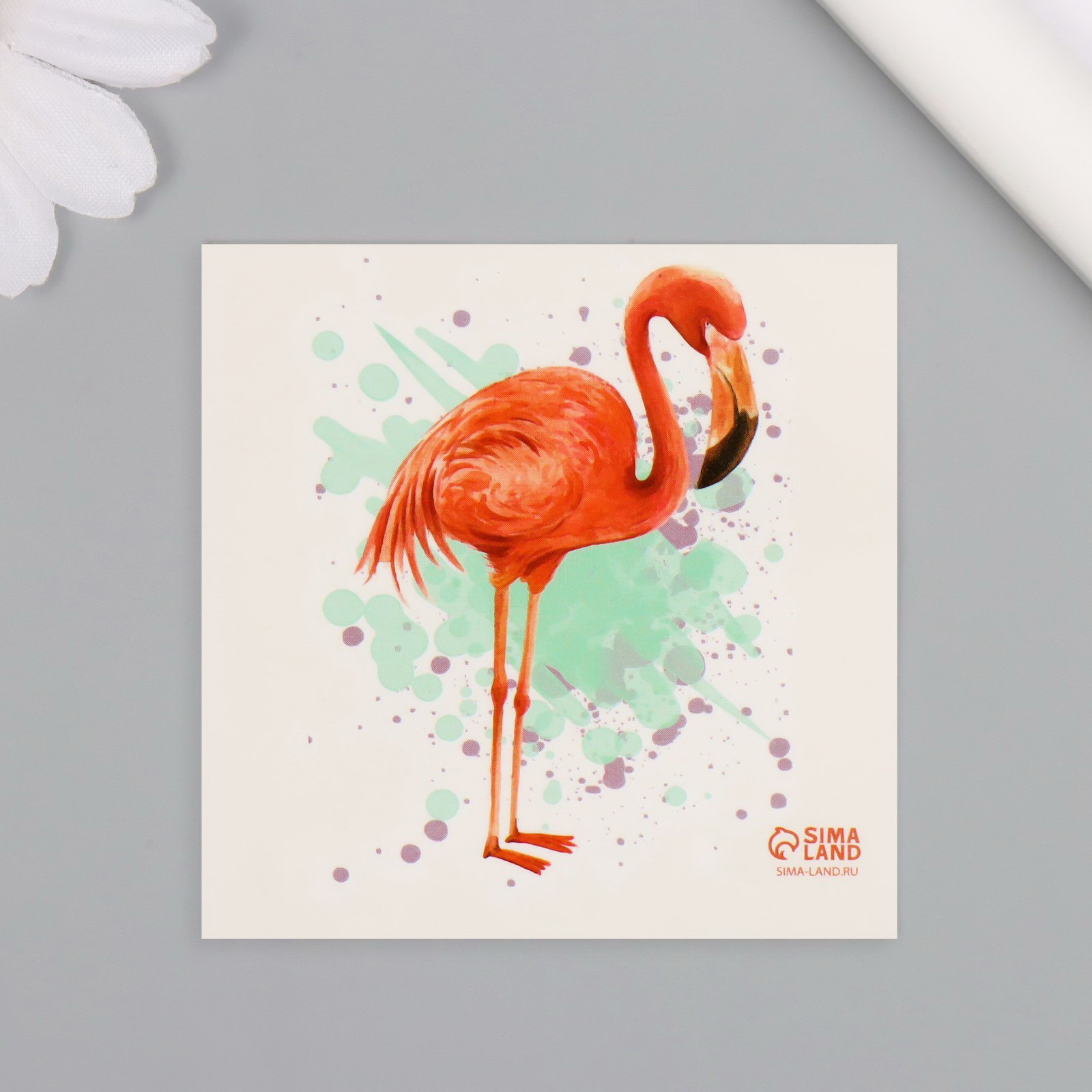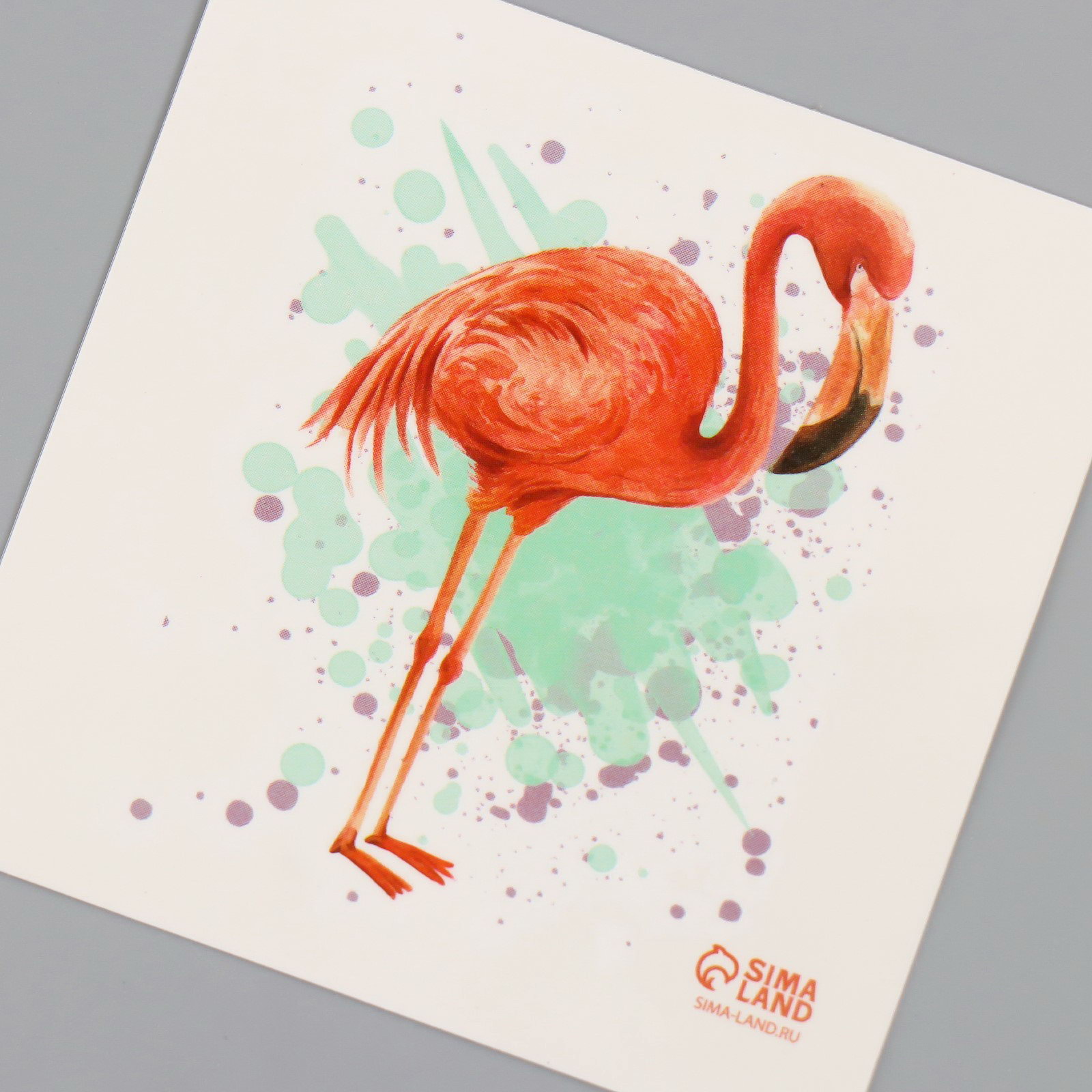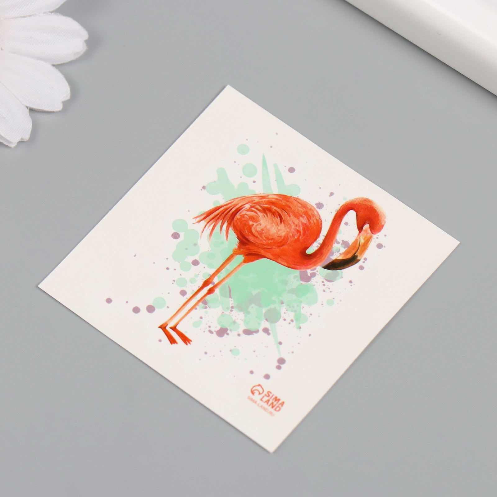 Переводная тату на тело цветная "Акварель. Фламинго", 6x6 см, 6x6 см., Арт Узор, Китай