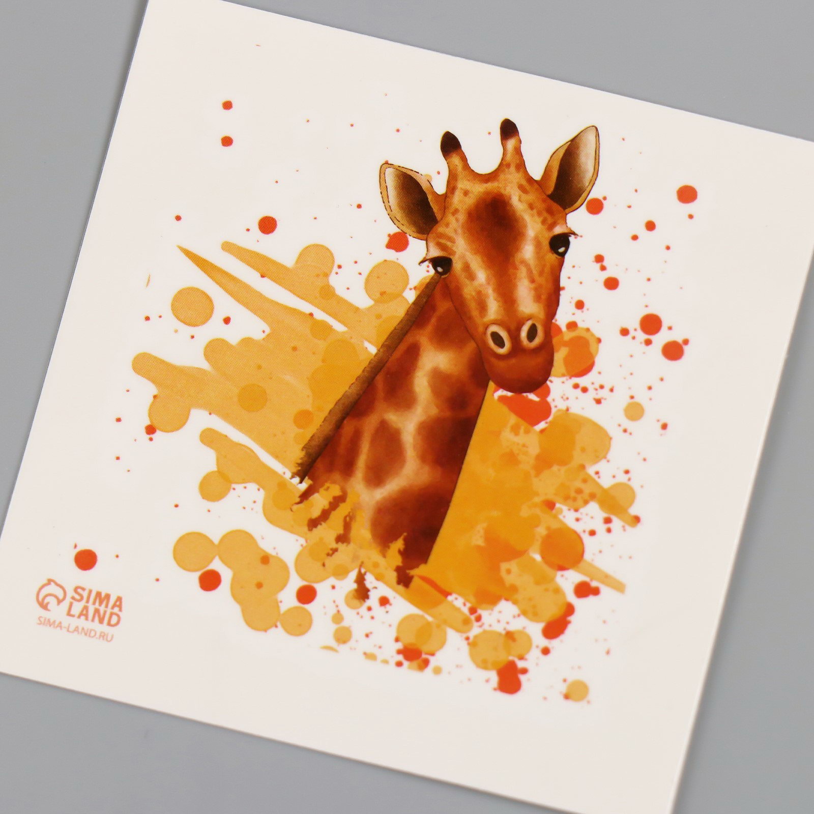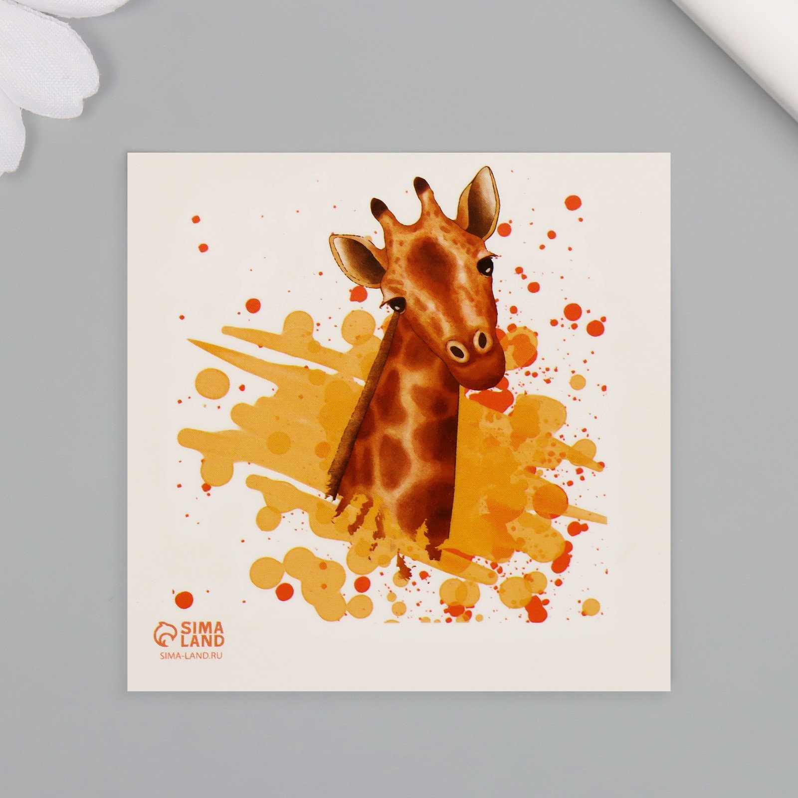Переводная тату на тело цветная "Акварель. Жираф", 6x6 см, 6x6 см., Арт Узор, Китай
