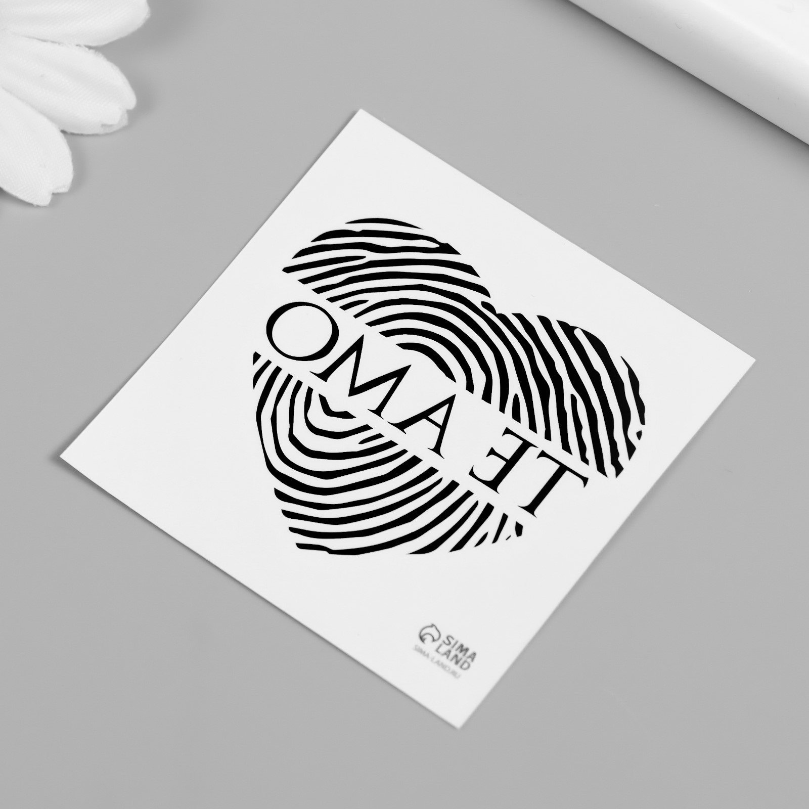 Переводная тату на тело чёрная "Сердце-отпечаток. Te amo", 6x6 см, 6x6 см., Арт Узор, Китай