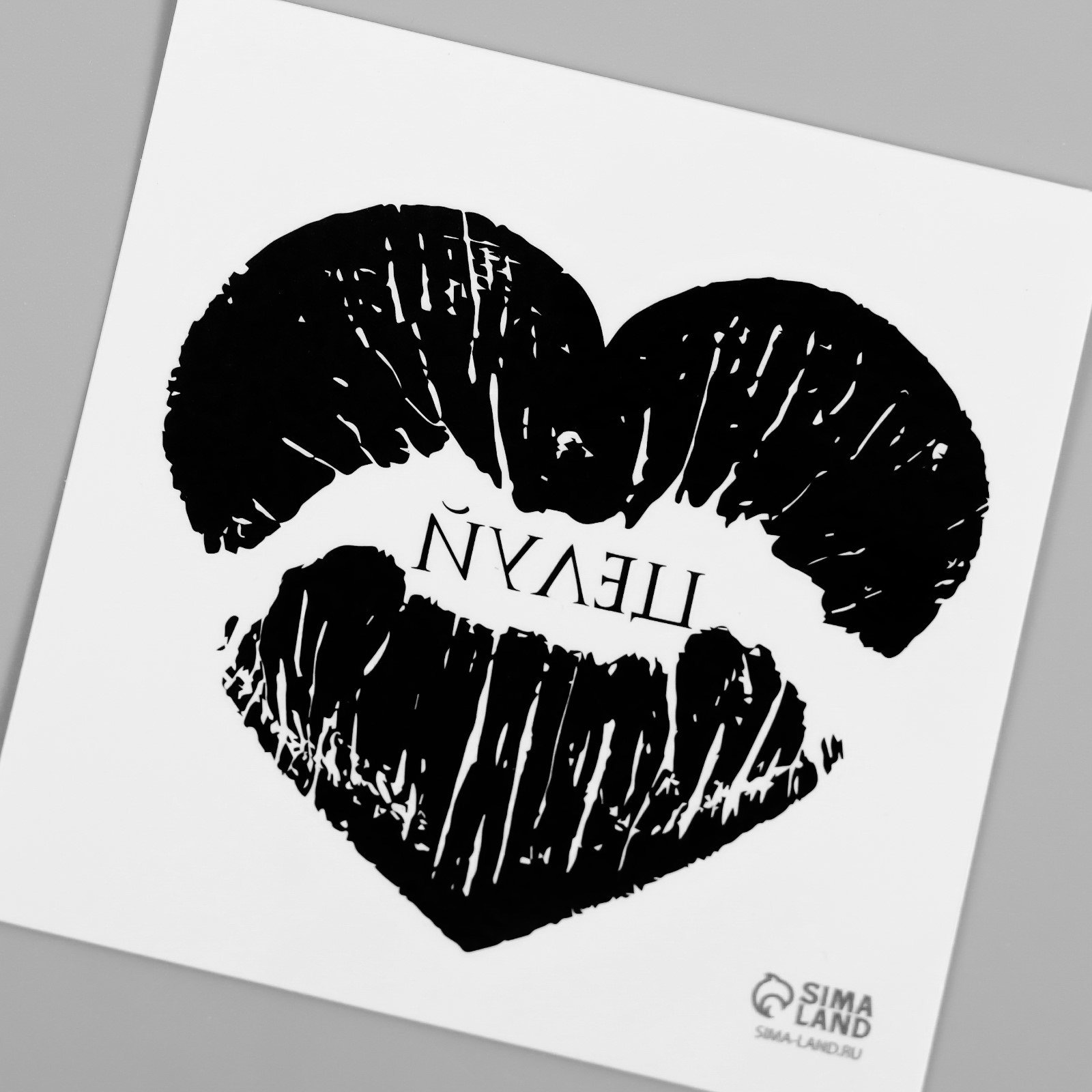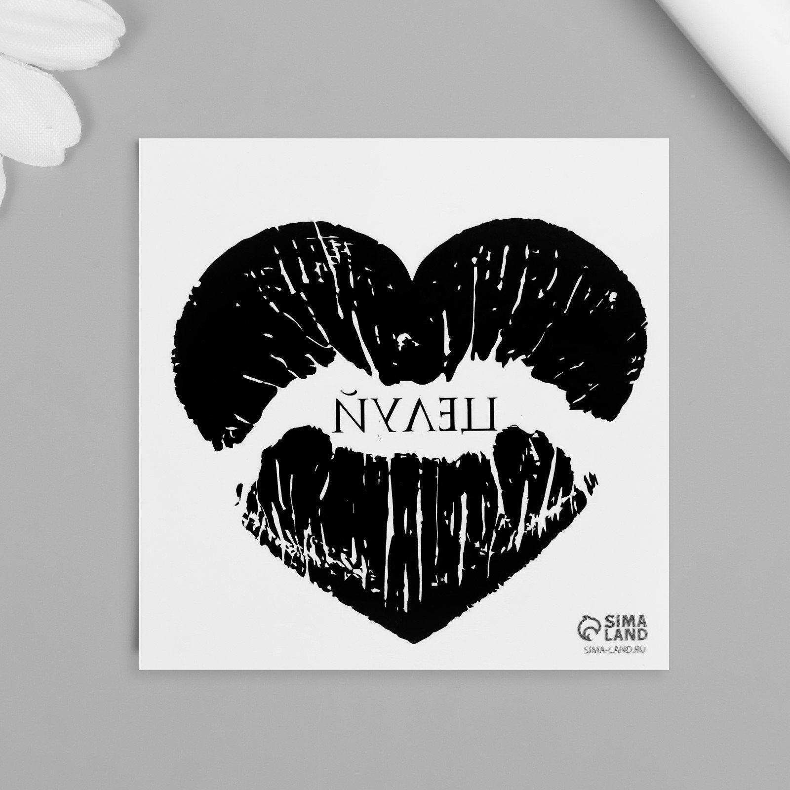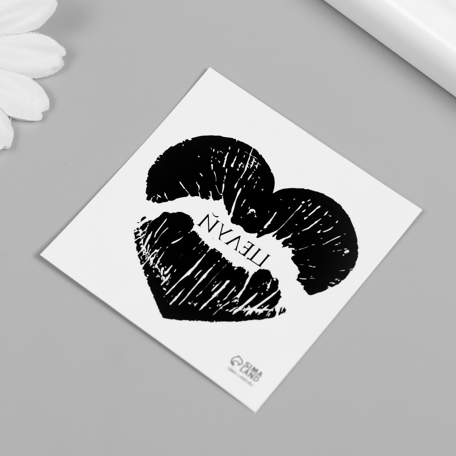 Переводная тату на тело чёрная "Сердце-отпечаток губ. Целуй", 6x6 см, 6x6 см., Арт Узор, Китай