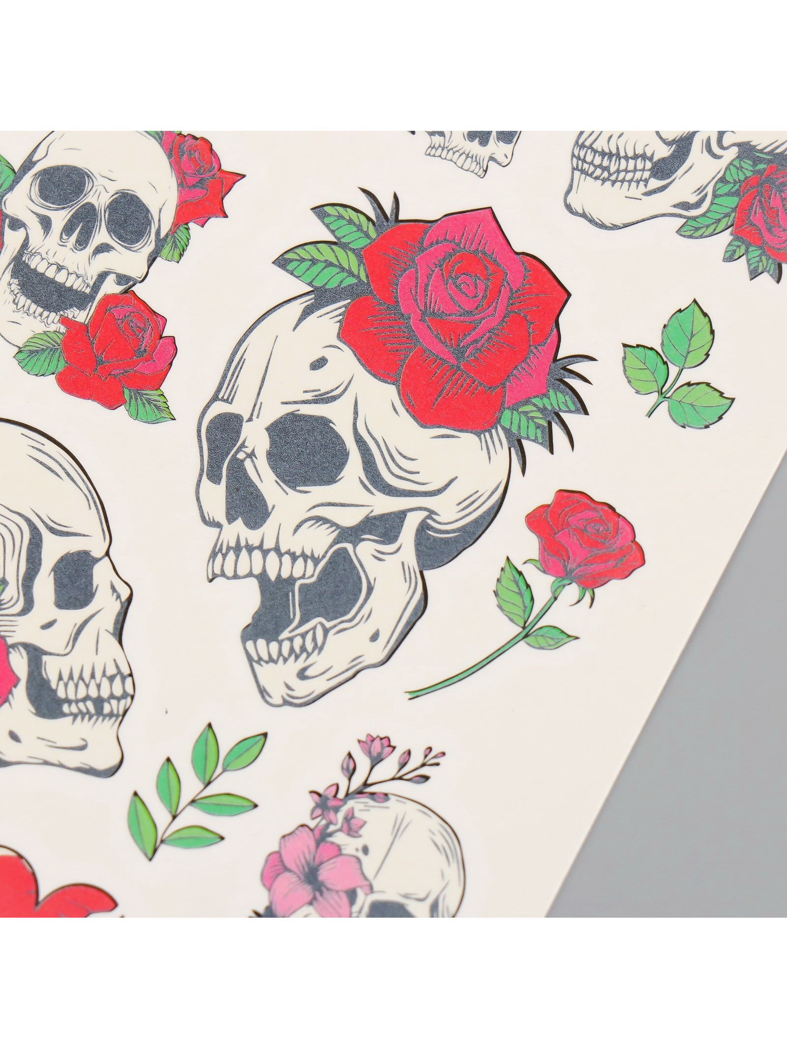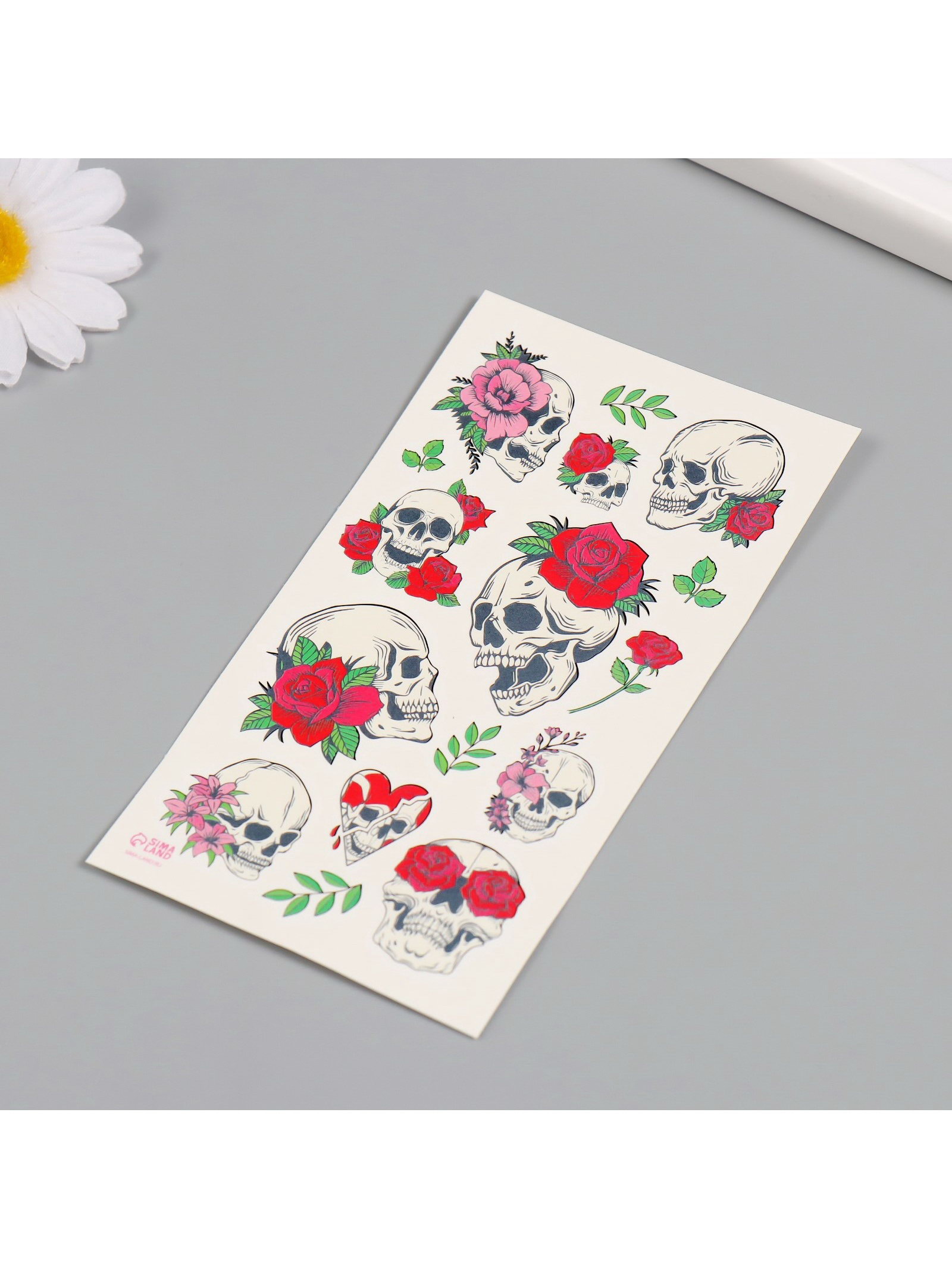 Переводные тату на тело цветные "Черепа и розы", 7.5x14 см, 7.5x14 см., Арт Узор, Китай