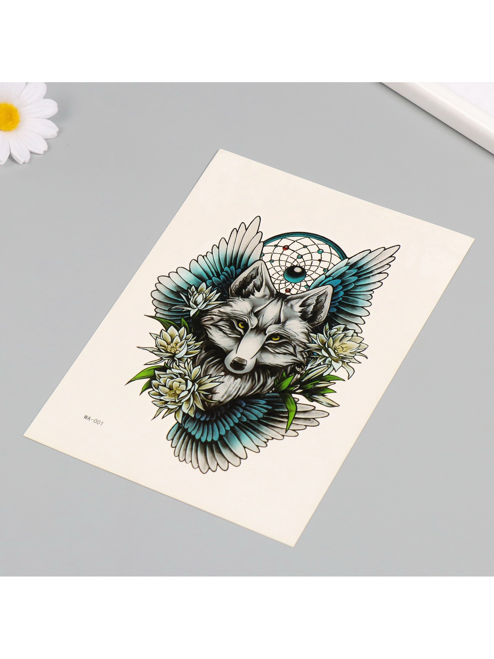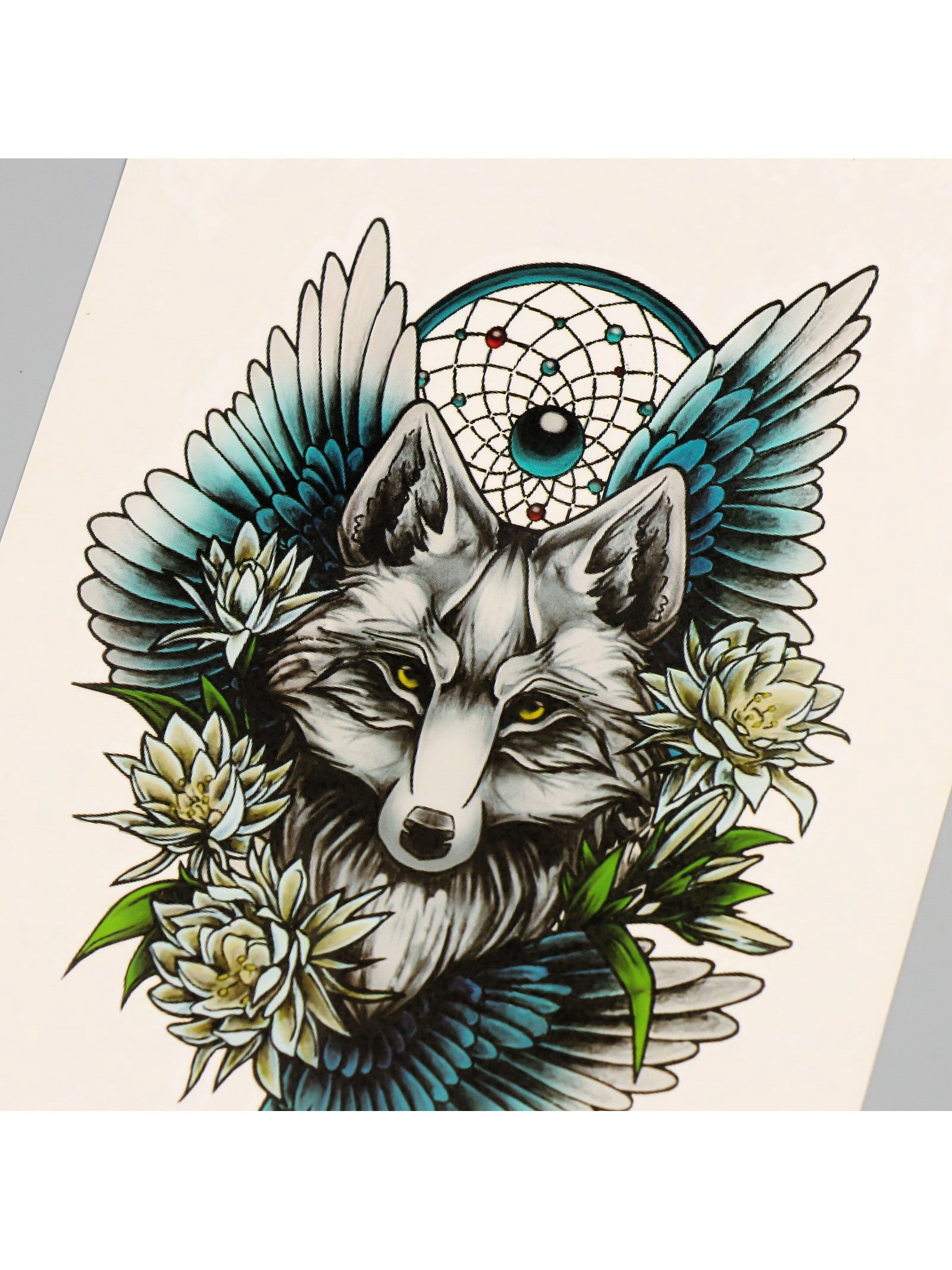 Переводная тату на тело цветная "Волк на фоне крыльев", 26.1x14.6 см, 14.6x26.1x0.2 см., Китай