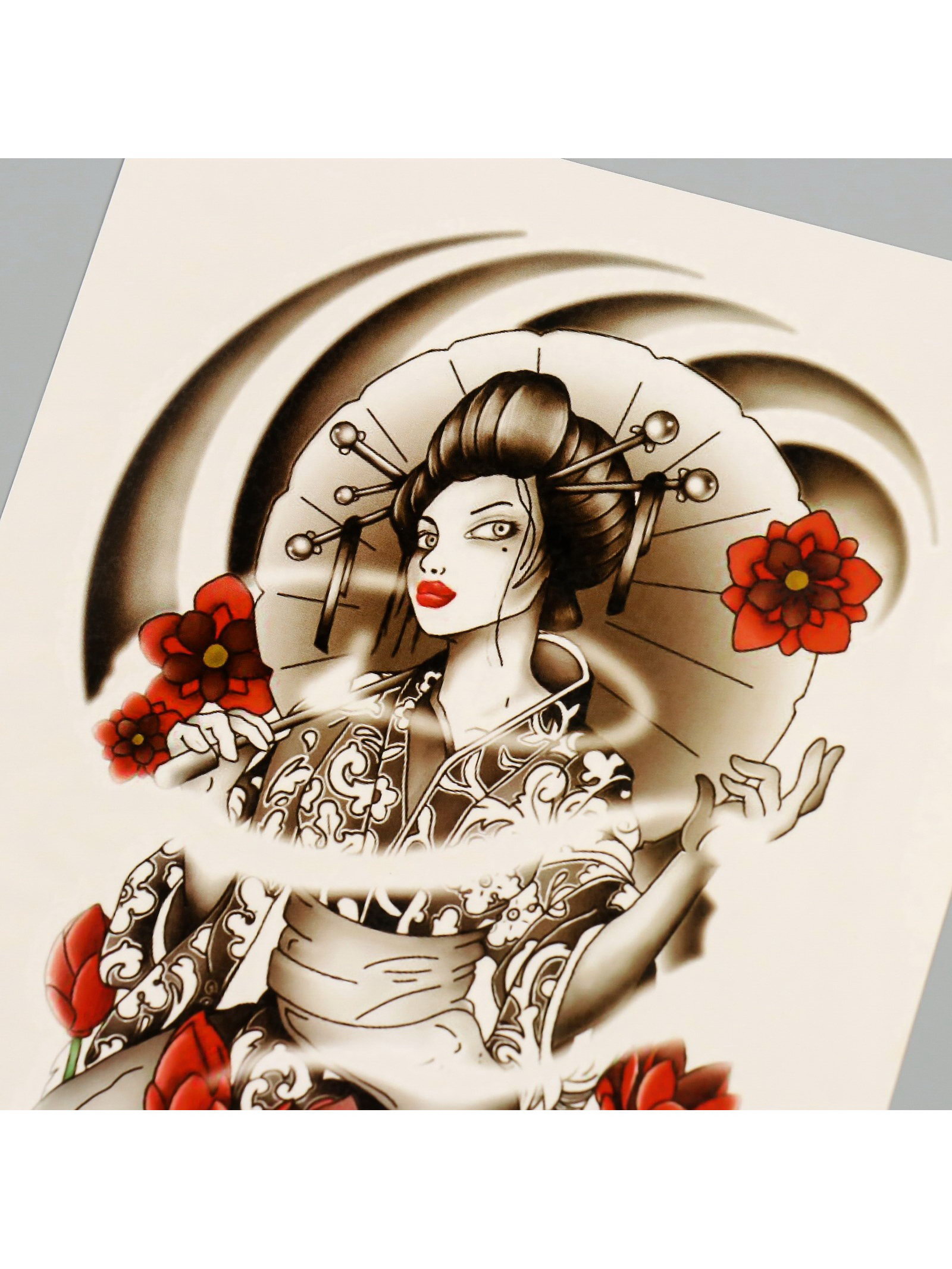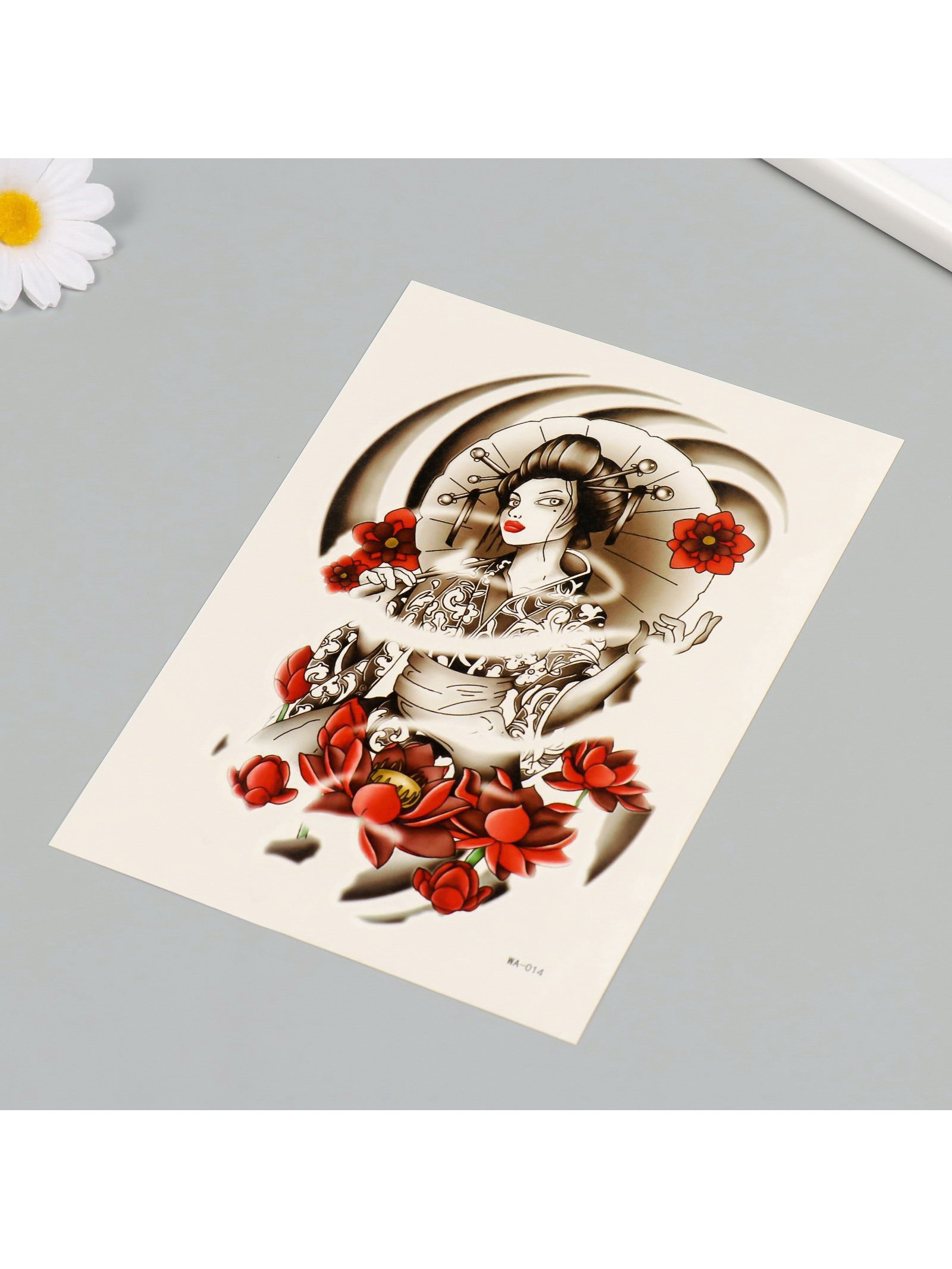 Переводная тату на тело цветная "Женщина Сакура", 26.1x14.6 см, 14.6x26.1x0.2 см., Китай