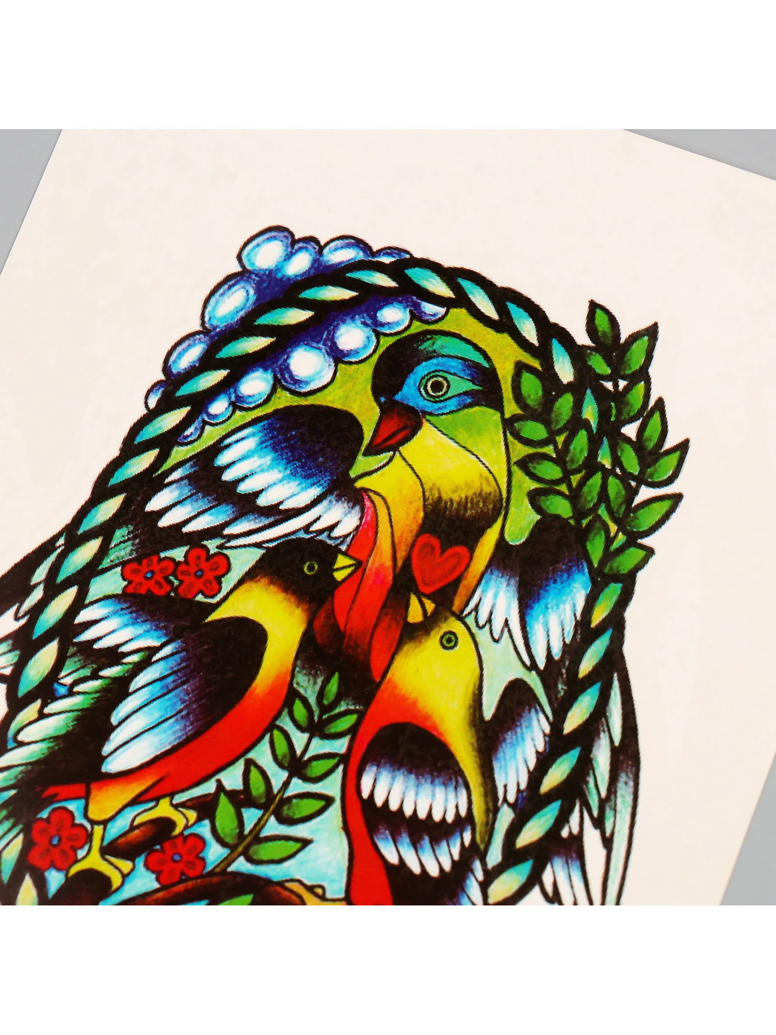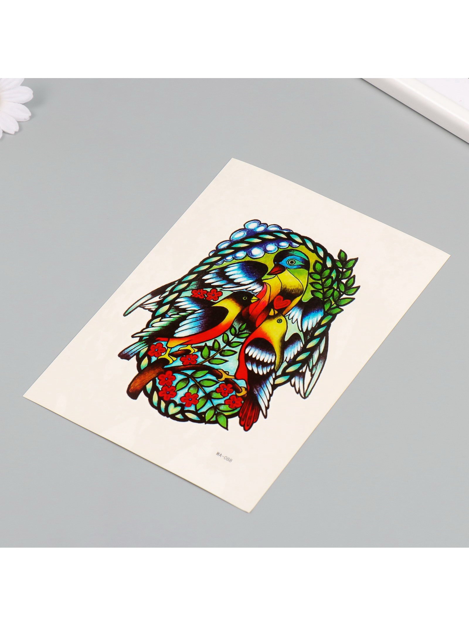 Переводная тату на тело цветная "Птицы арт", 26.1x14.6 см, 14.6x26.1x0.2 см., Китай